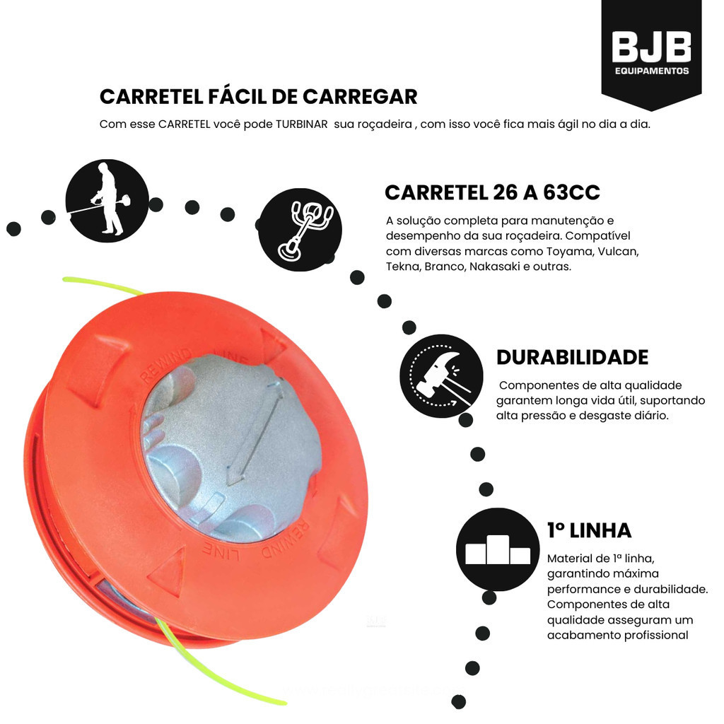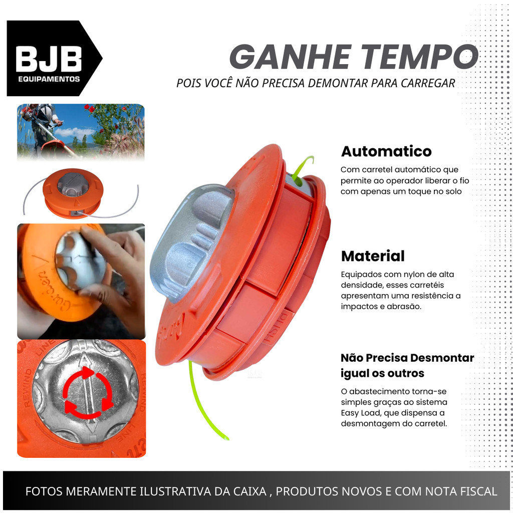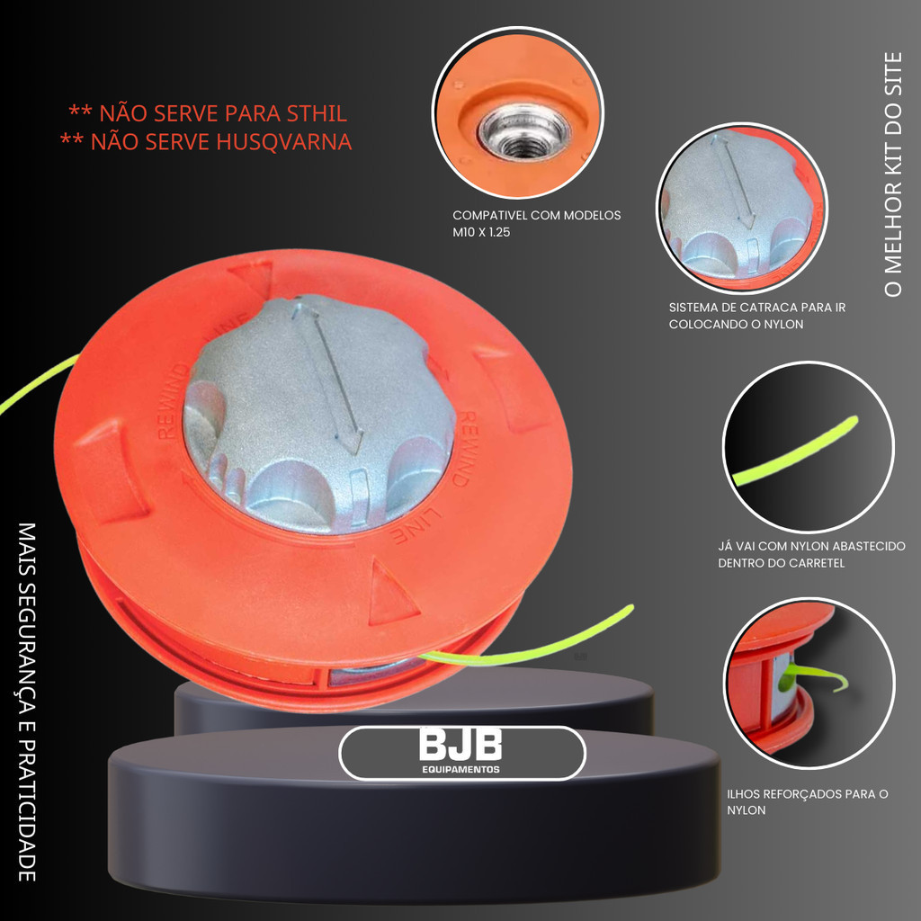 Carretel Automático Profissional Garden Para Roçadeiras Carga Fácil + 1m de Fio Rosca M10 X1,25