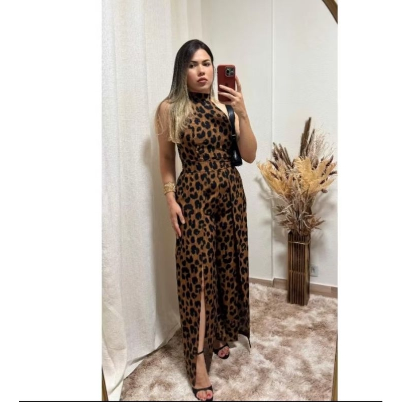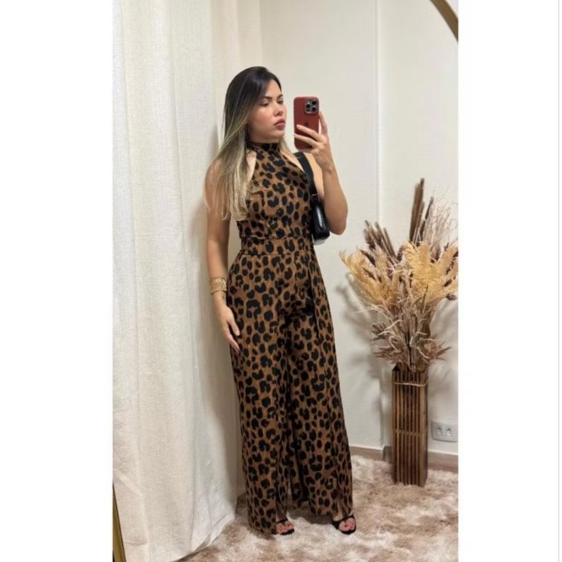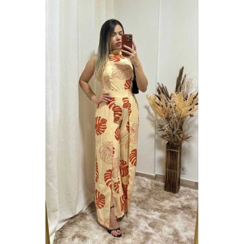 Macacão longa feminina estampado costa lastex