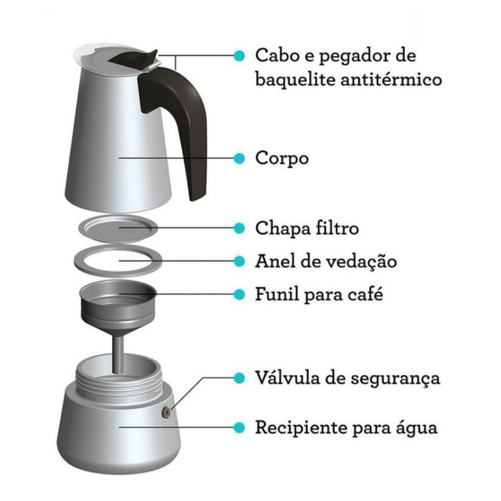 Cafeteira Italiana 9 Xícaras Inox - Expresso com Alta Pressão e Moka 4/6 Xícaras para Cozinha