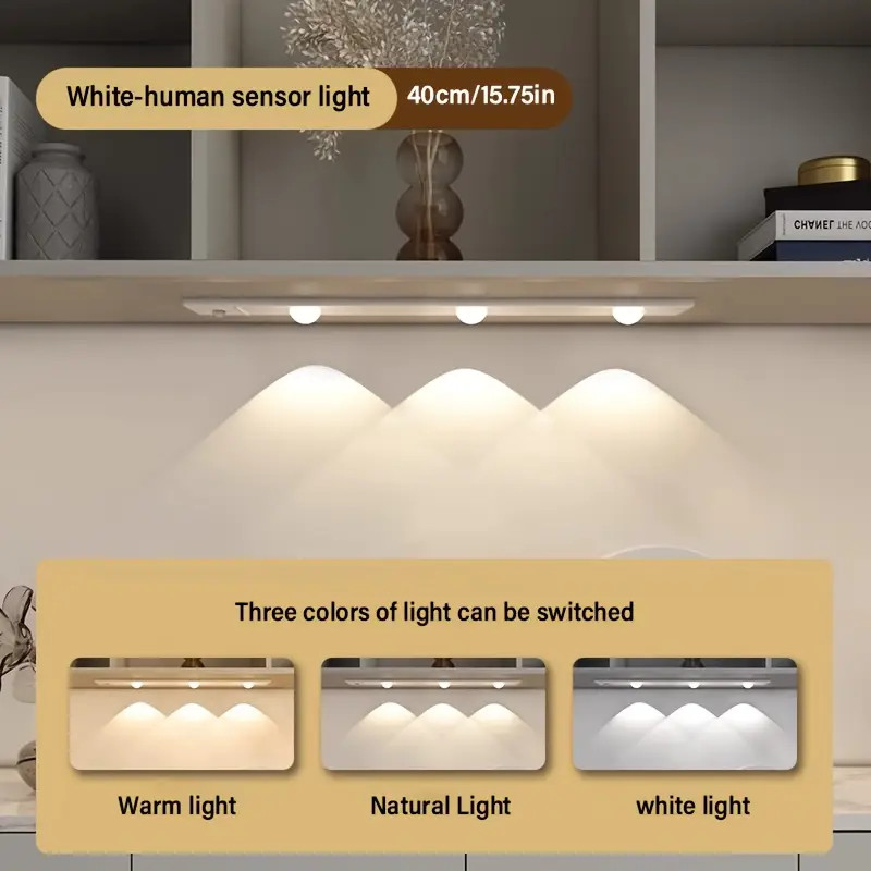 Luz LED regulável em 3 cores USB recarregável esportiva Sensor luz adequada para cozinha e sala de estar