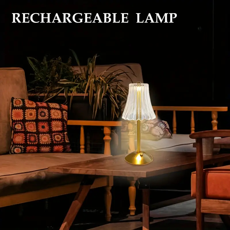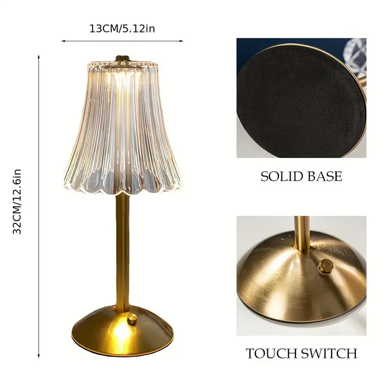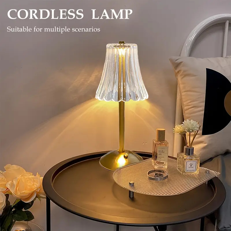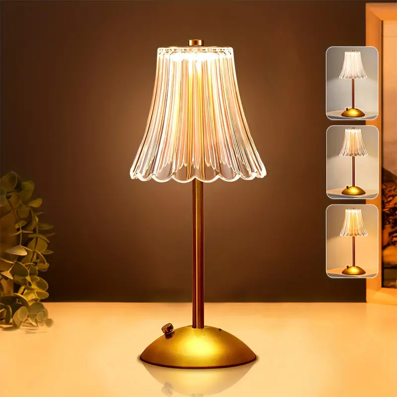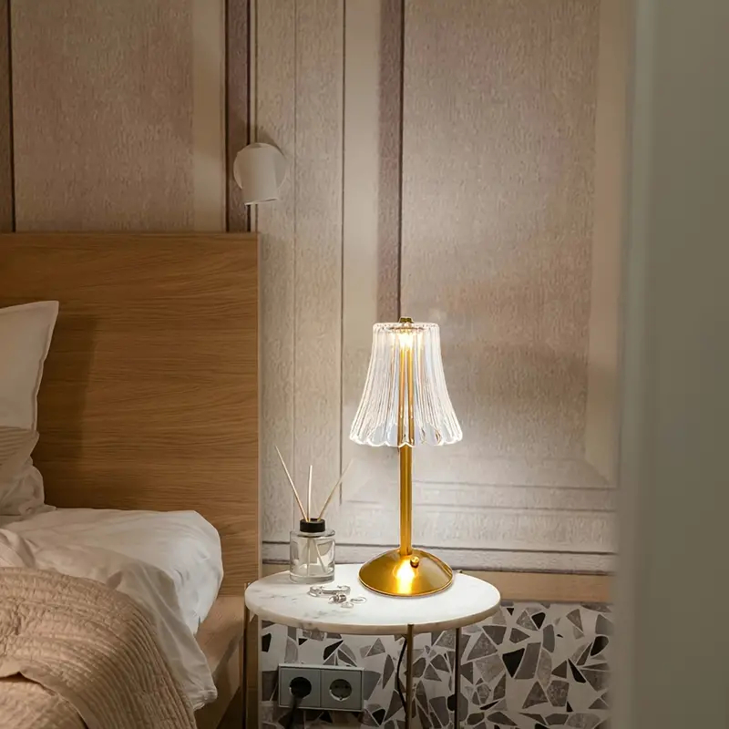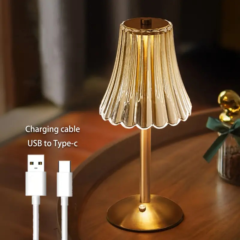 Abajur Recarregável de Mesa dourado Aço inoxidável Luz Touch sem fio LED Luminária de mesa P/quarto
