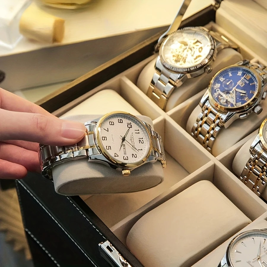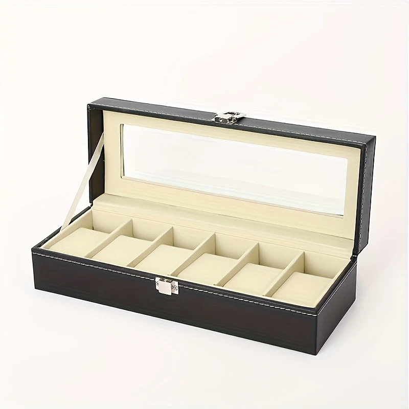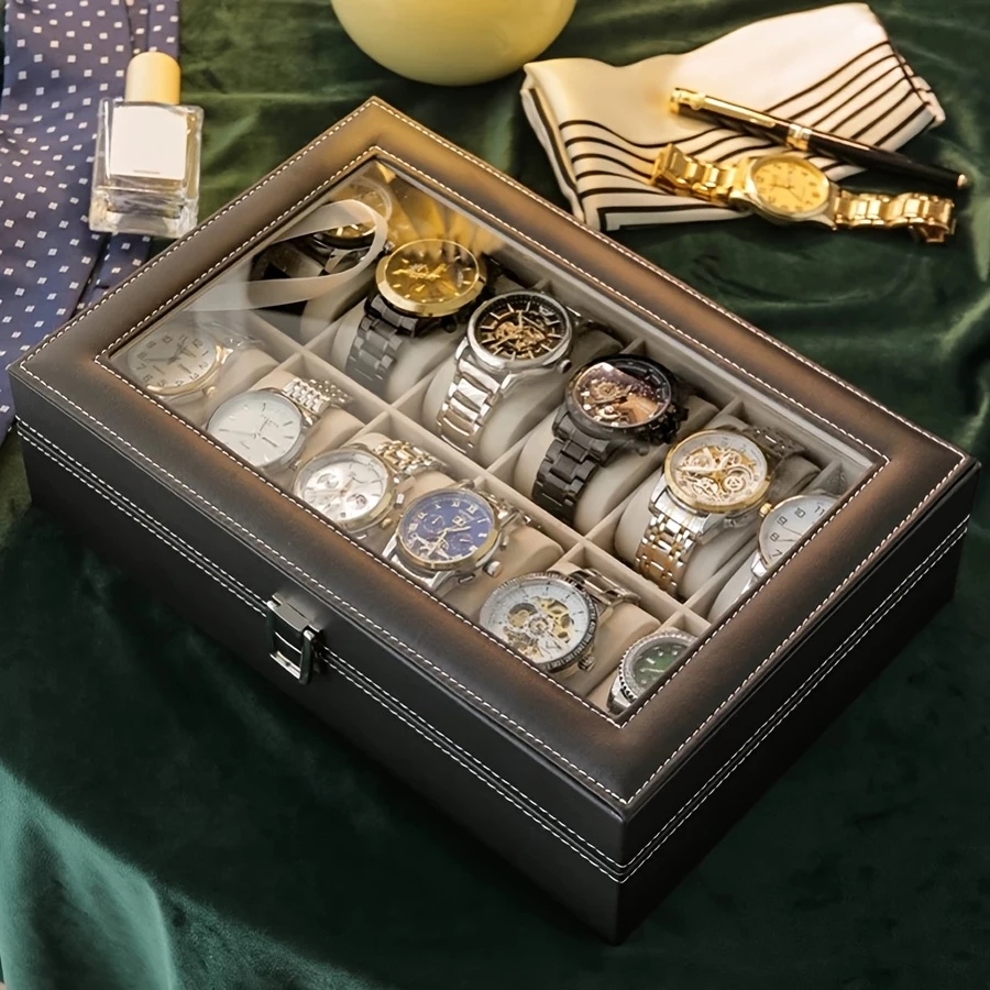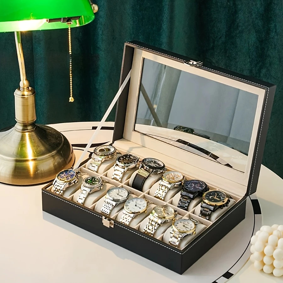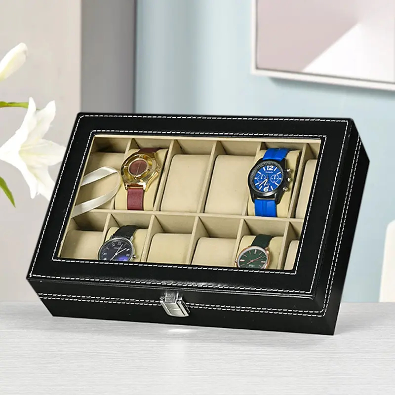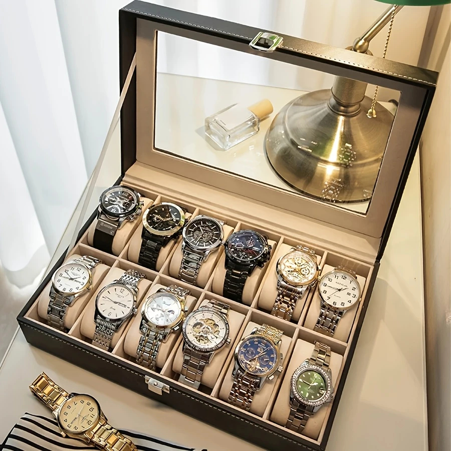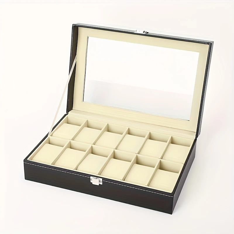 Estojo Porta Relógio 12/6 Nichos Couro Sintetico Organizador de Joias e Bijuterias