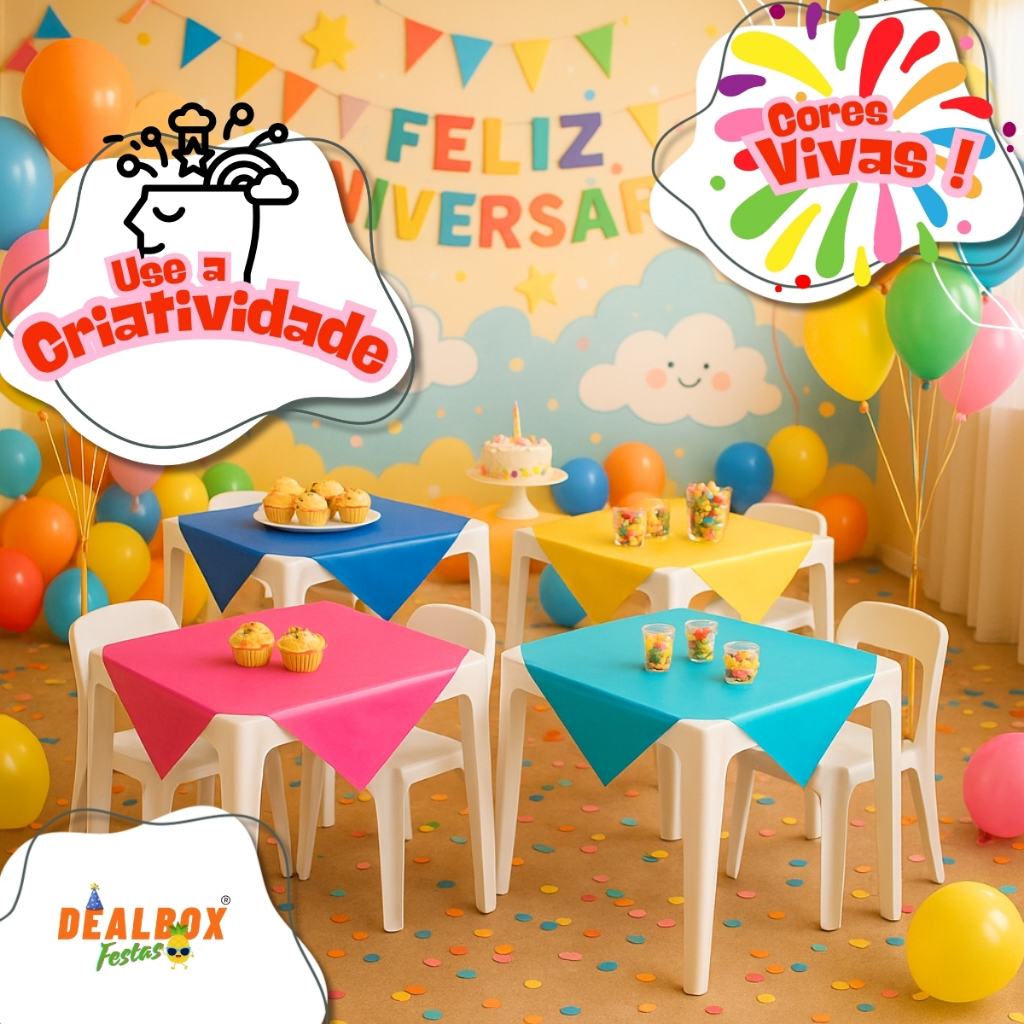 Kit 10~40 Toalha Plástica Mesa Aniversário Festa Junina Cola na Mesa