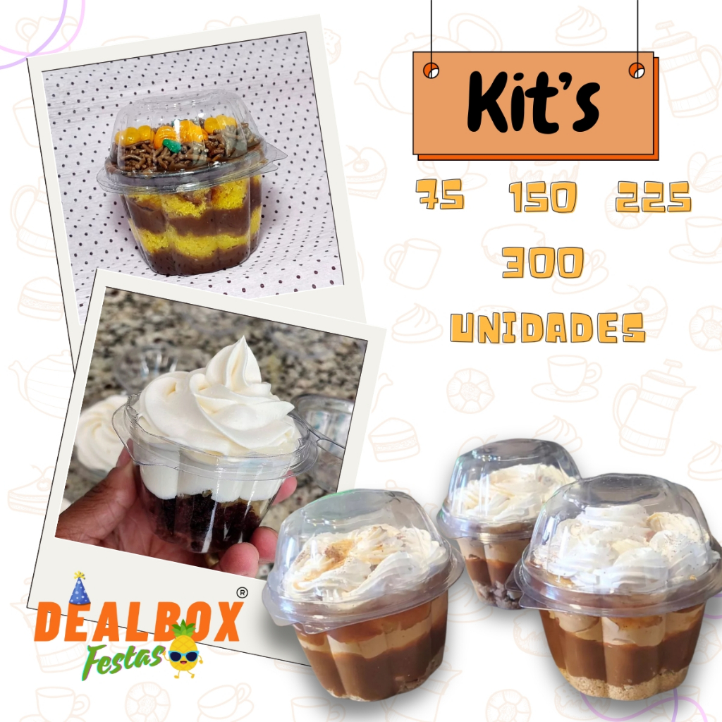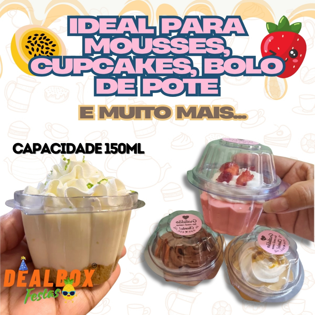 75~300 Unidades Kit Embalagem Mousse Cupcake Bolo de Pote 150ml