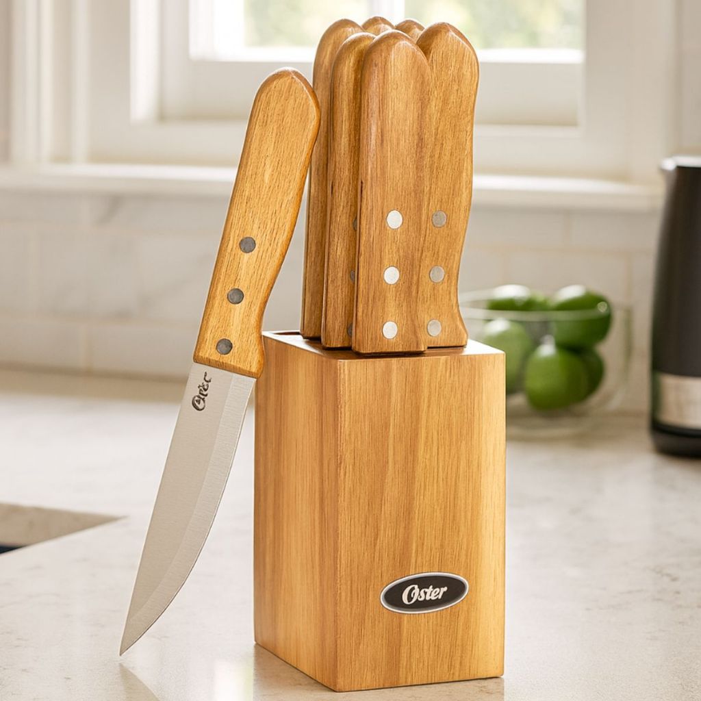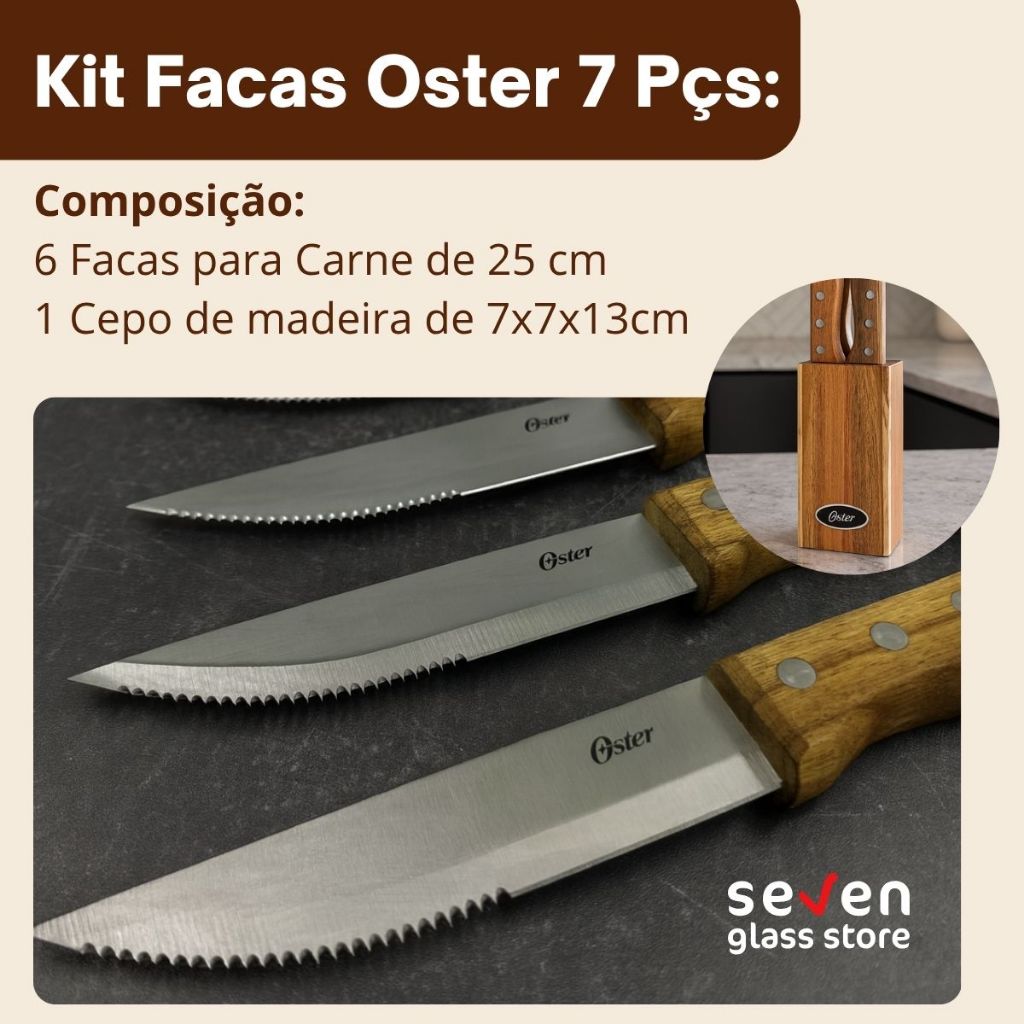 Conjunto De Facas Oster Para Churrasco Aço Inox 7 Peças Cepo Madeira Hersden