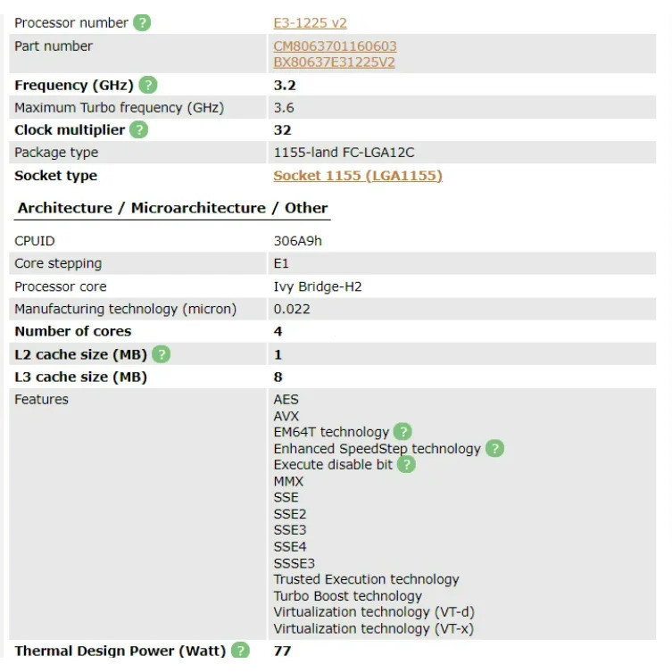 Xeon E3 1225 v2 E3-1225v2 3.2 GHz Rosca Quad-Core 8M 77W LGA 1155 para B75 Motherboy