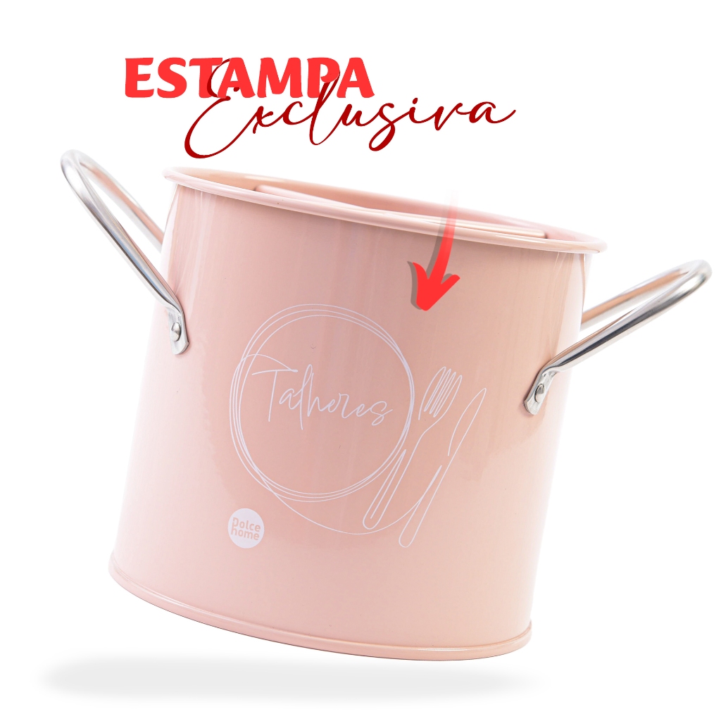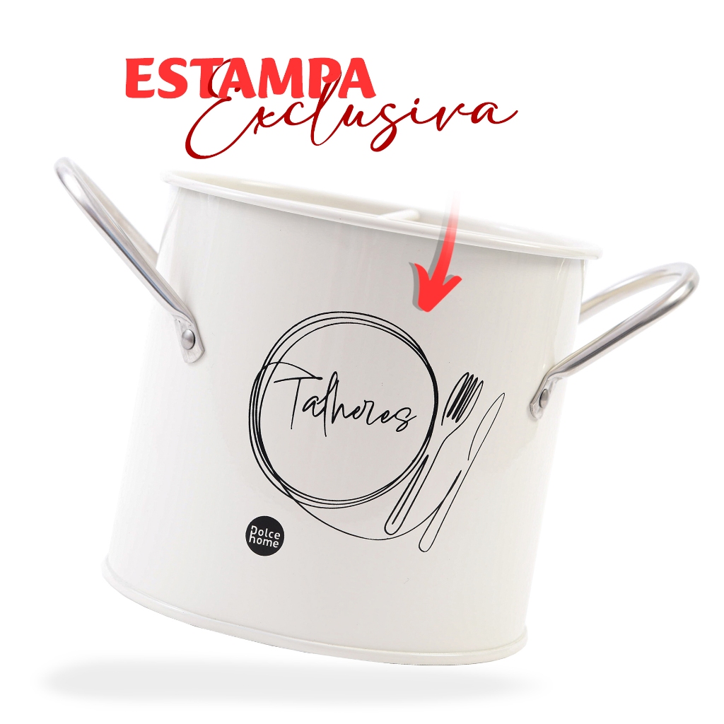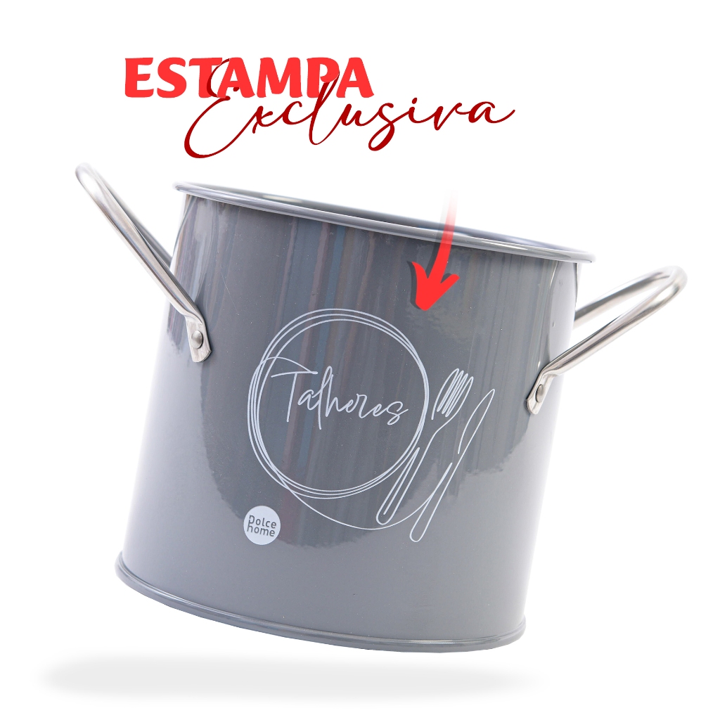 Porta Talheres De Metal Com Estampa Exclusiva Organizador Com Alças Laterais