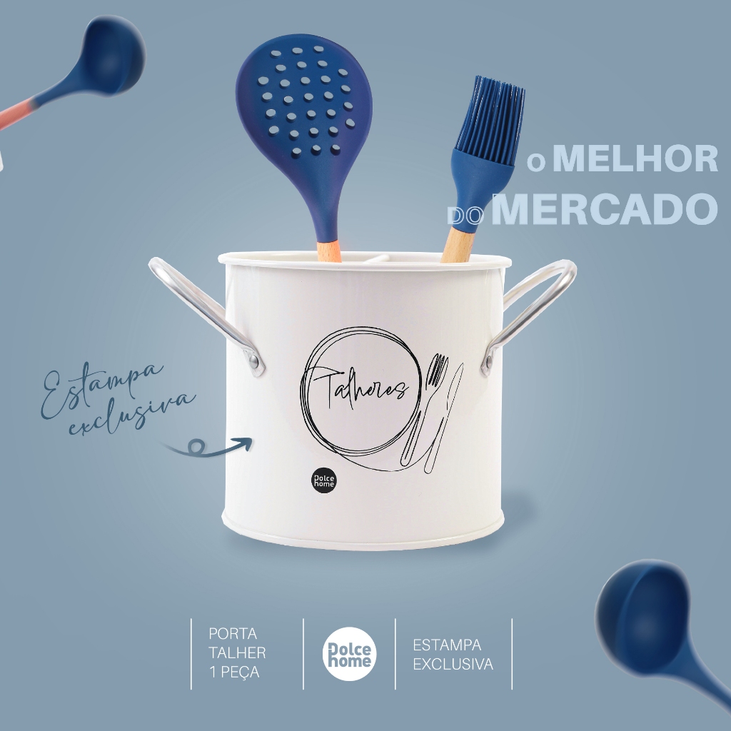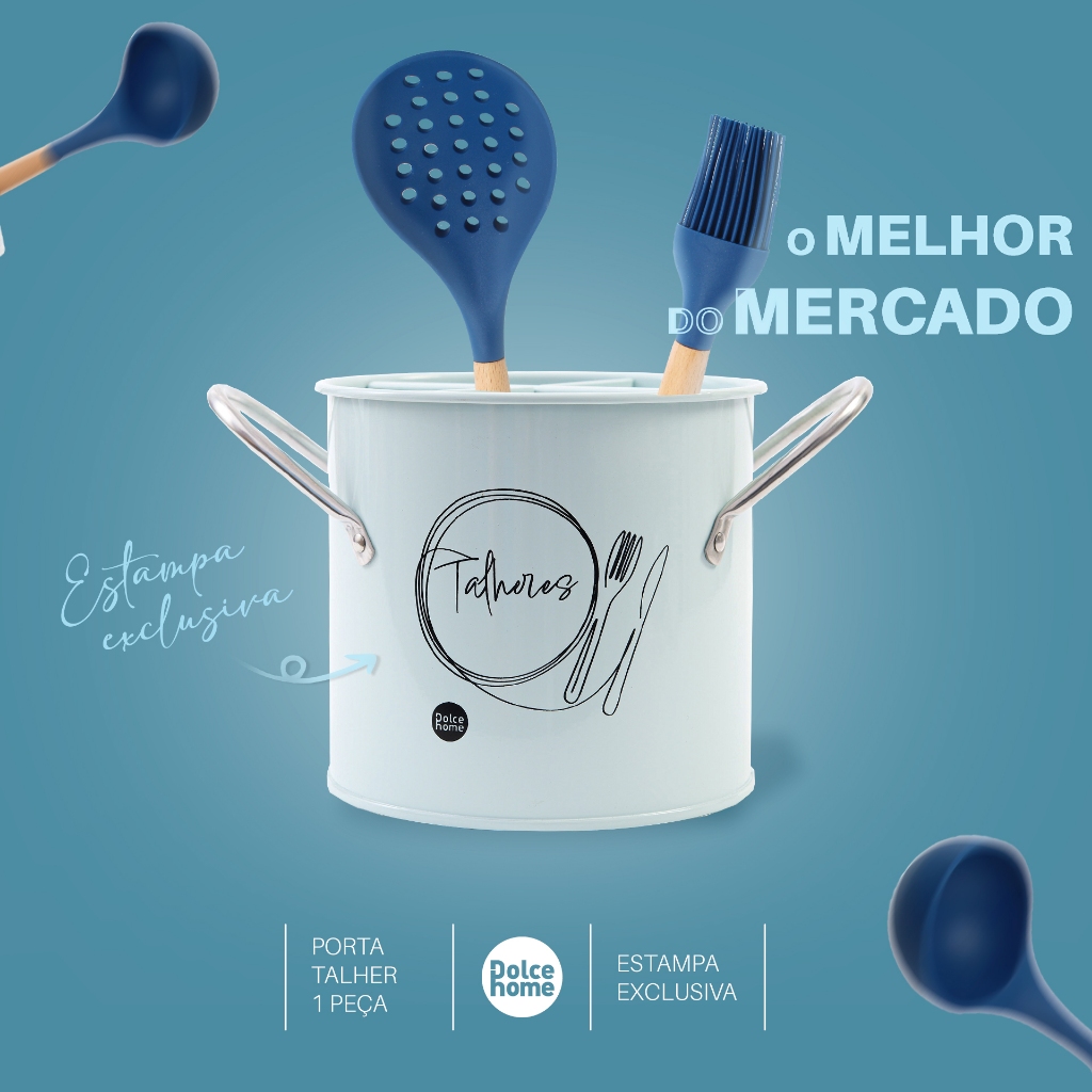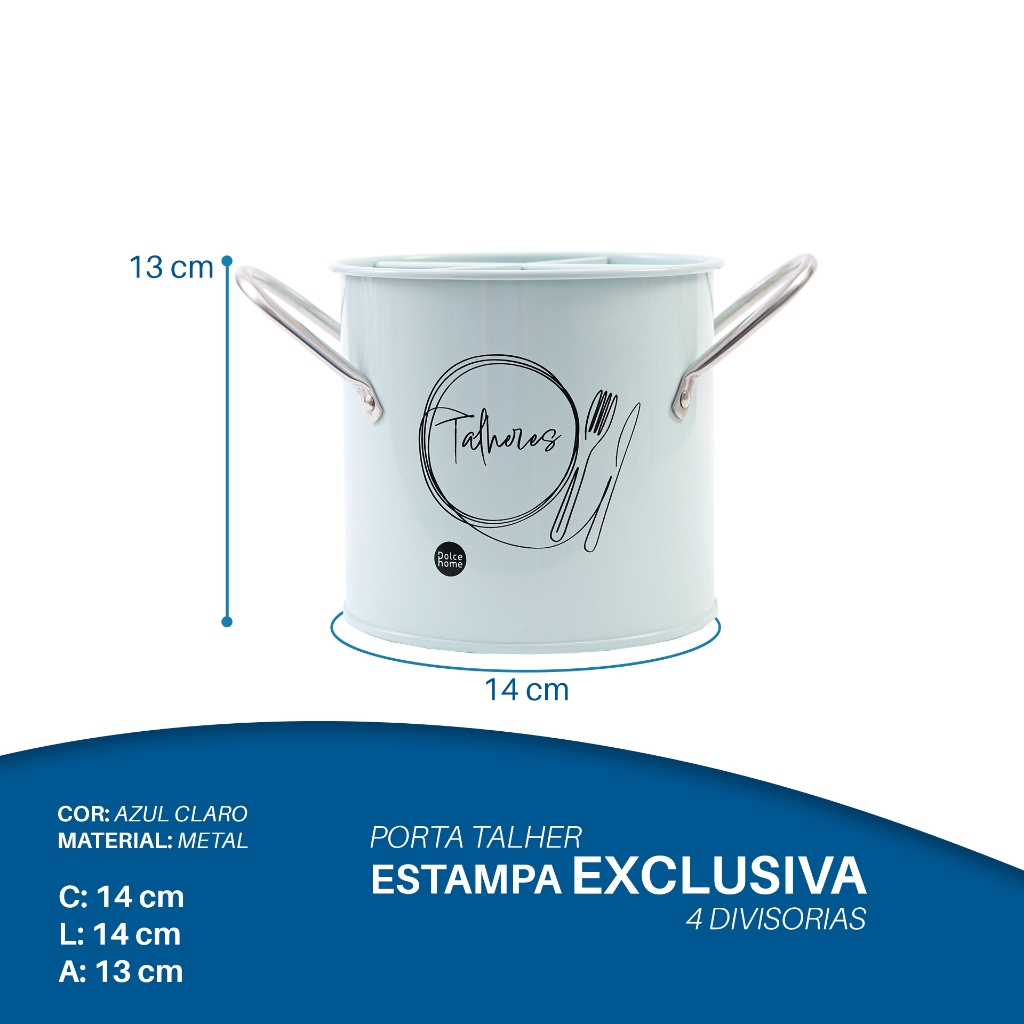 Porta Talheres De Metal Com Estampa Exclusiva Organizador Com Alças Laterais