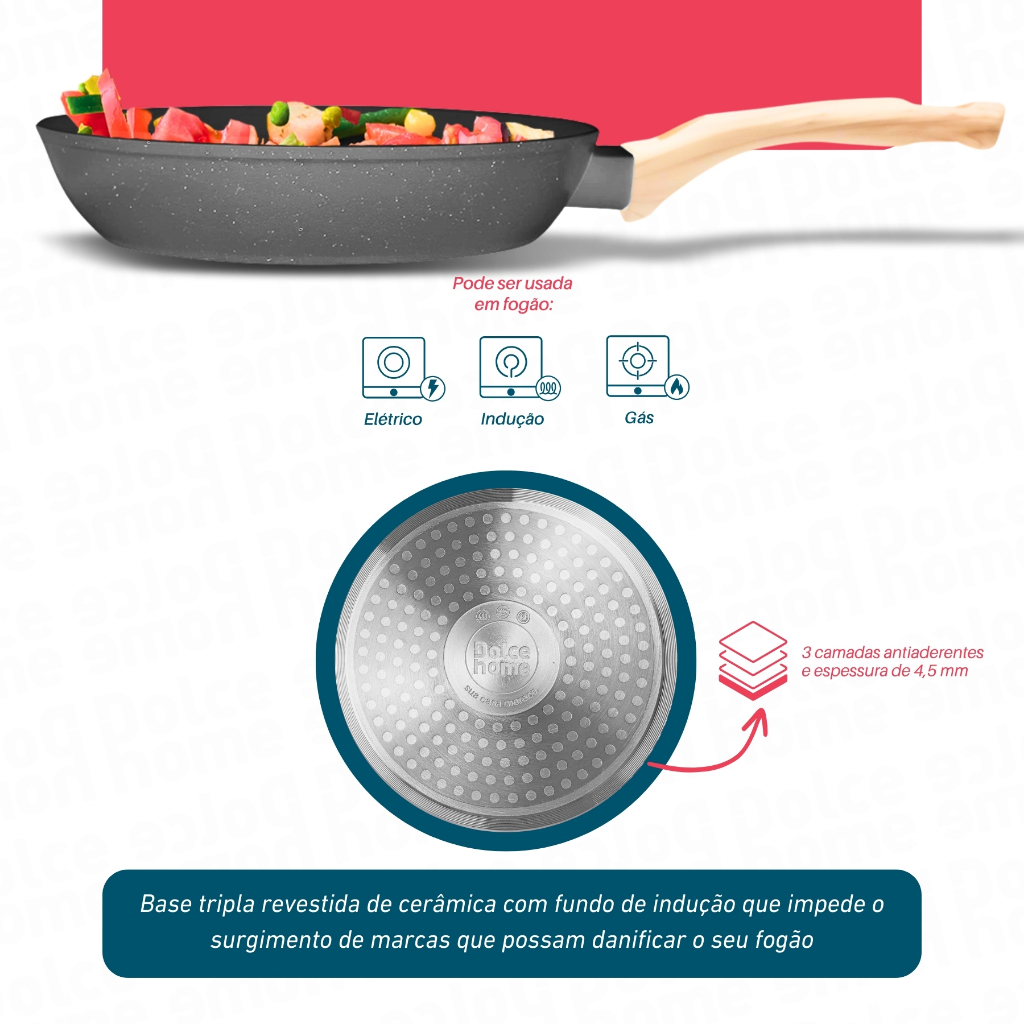 Frigideira Indução 28cm 2,55L Fundo Triplo Revestimento Antiaderente Creme - Bhz Store