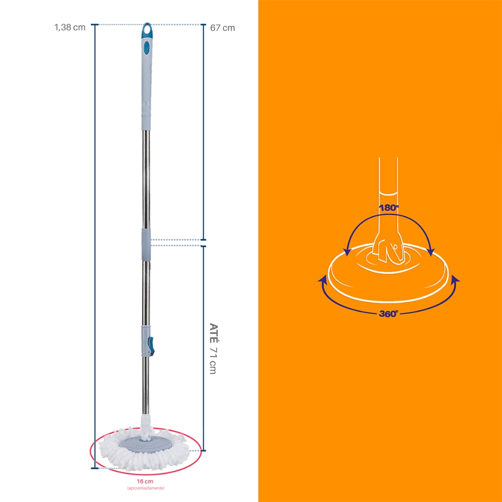Cabo Mop Giratório Completo Com 138 Cm - Bhz Store