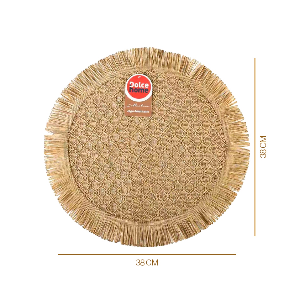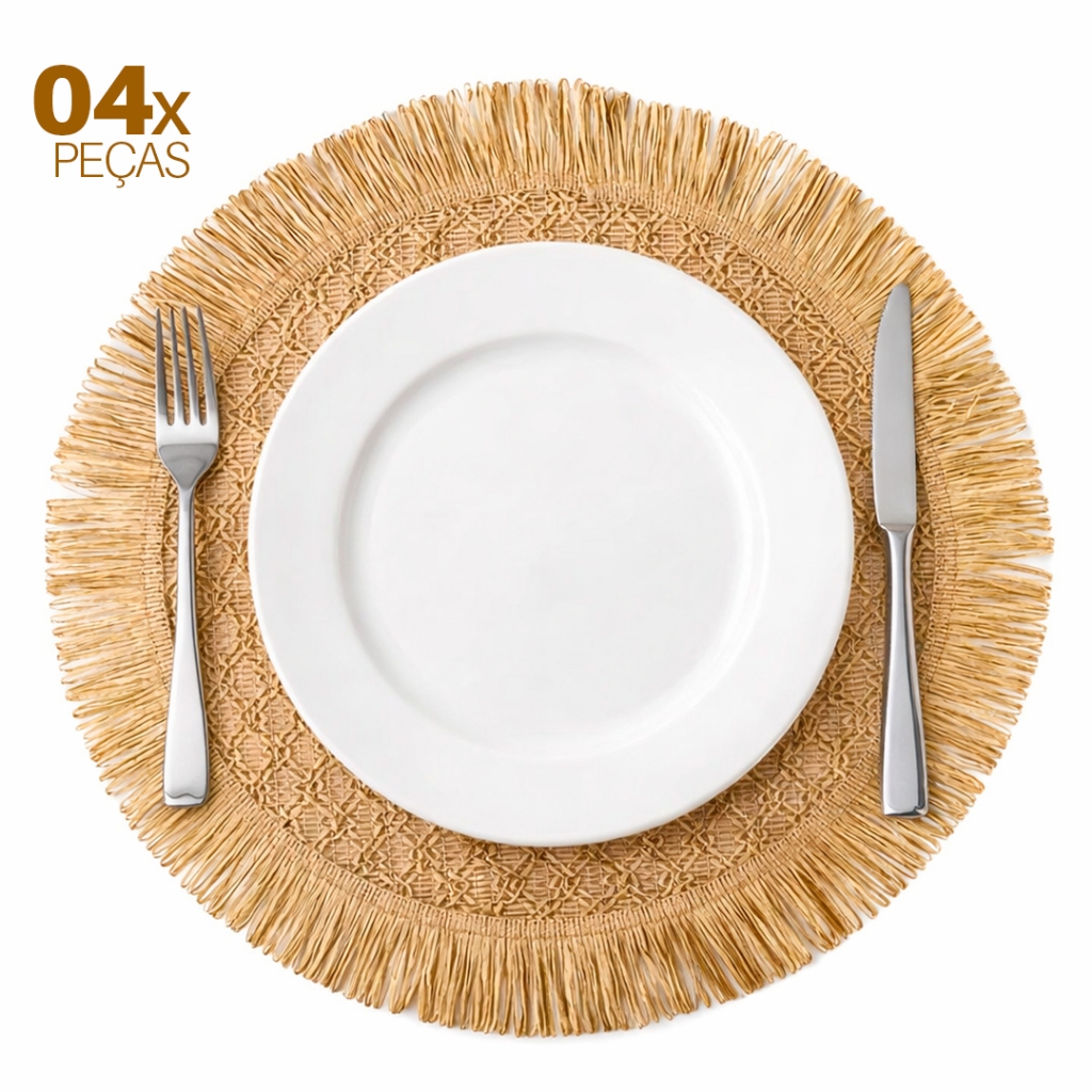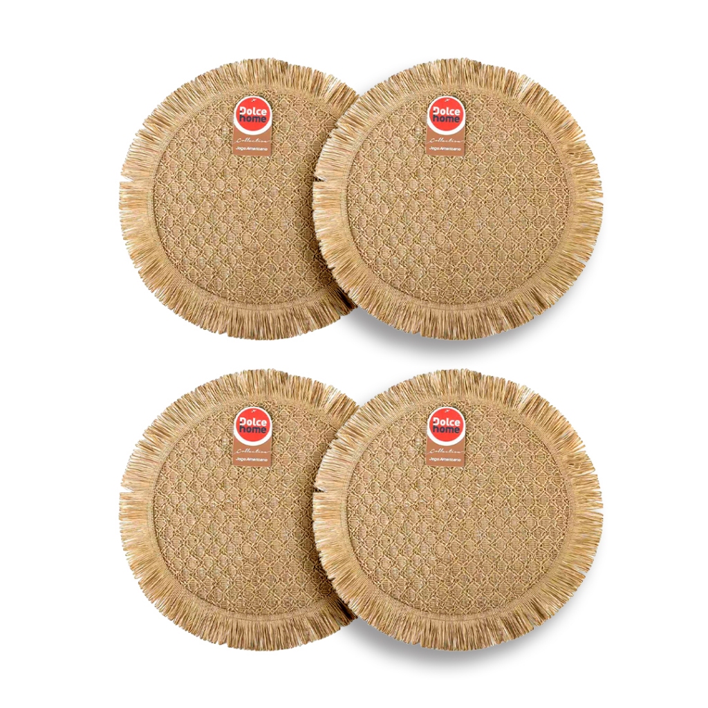 Jogos Americanos 38cm Kit 4 Mesa Posta Fibra Natural com Franjas Premium