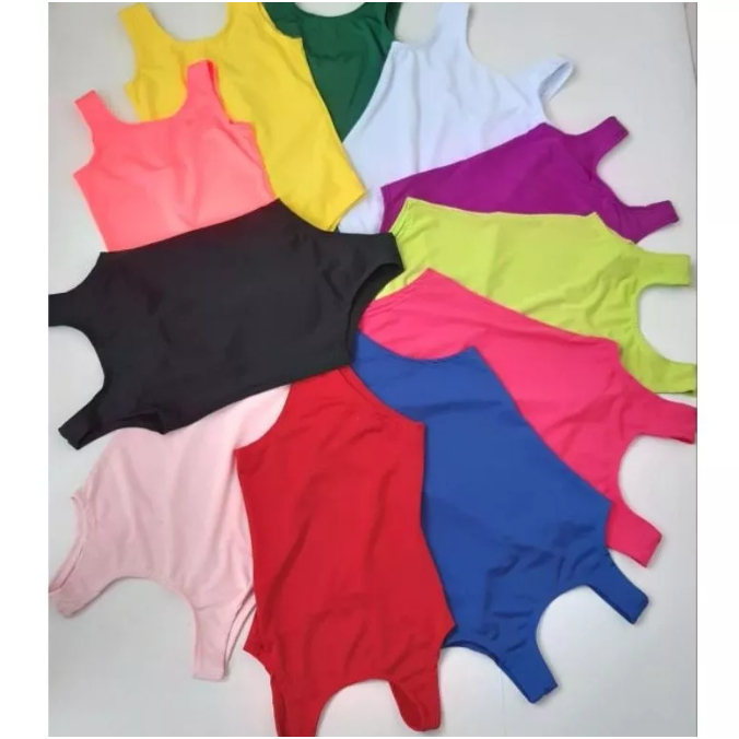 Body Infantil / Collant Regata Colorido Liso Preto Branco Rosa Pink Verde Vermelho Amarelo Azul Maio Ballet Dança Balé