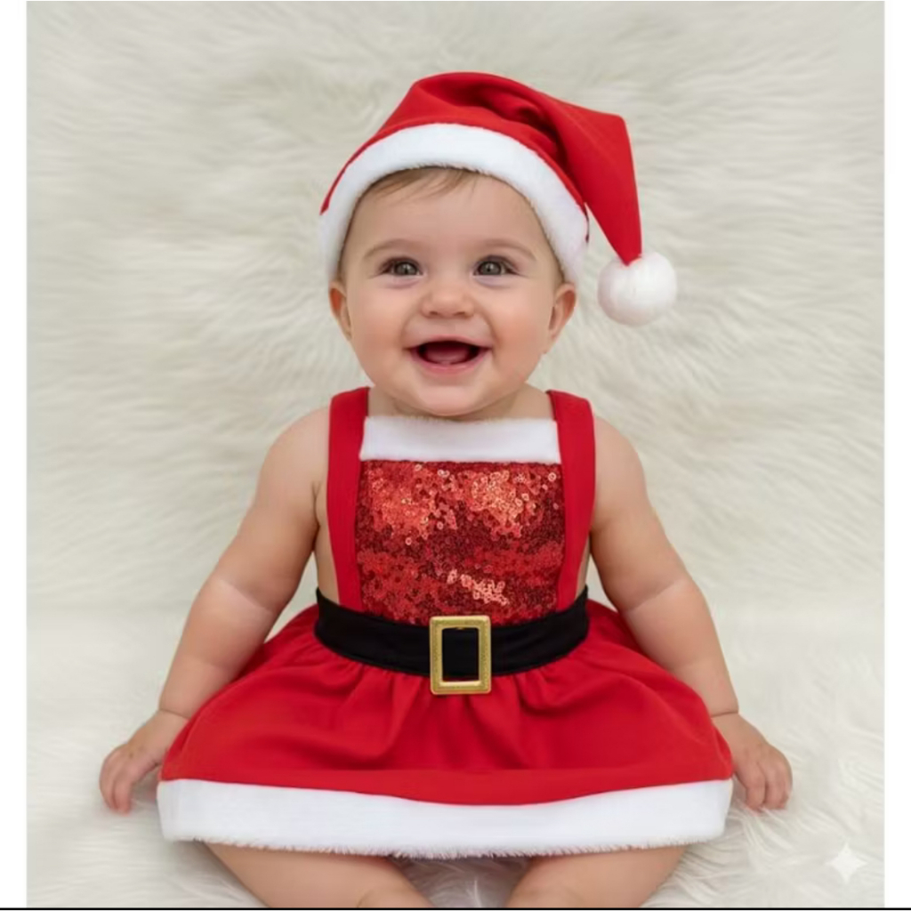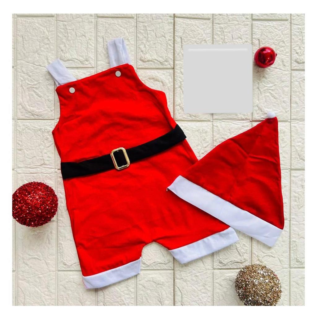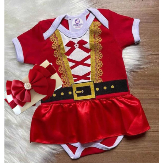 Kit Macacão Bebê Menina Papai Noel - Roupa de Bebê - Natal Vermelho Jardineira mais Gorro Touca body Mesversário