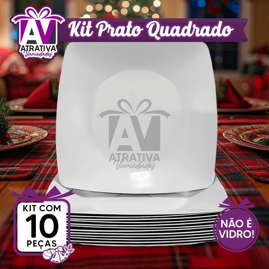 KIT 10 PRATOS QUADRADOS REFEIÇÃO PARA FESTAS E COMEMORAÇÕES CHURRASCO