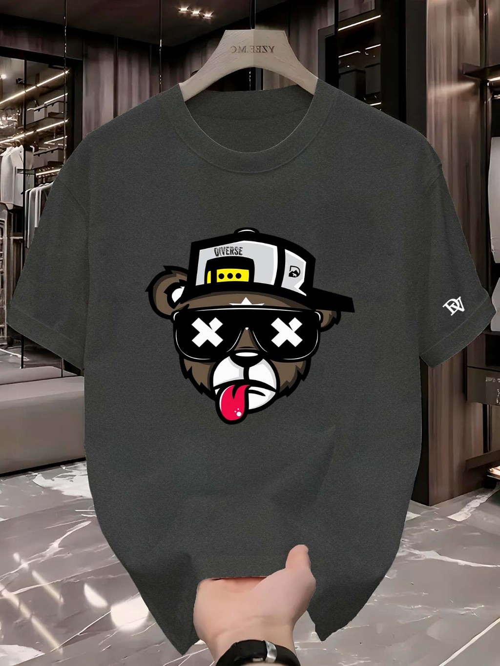 Camiseta MasculinaStreet Wear Urso Bolado T-Shirt Camisa 100% Algodão Manfinity