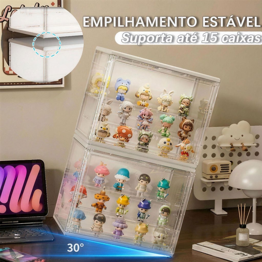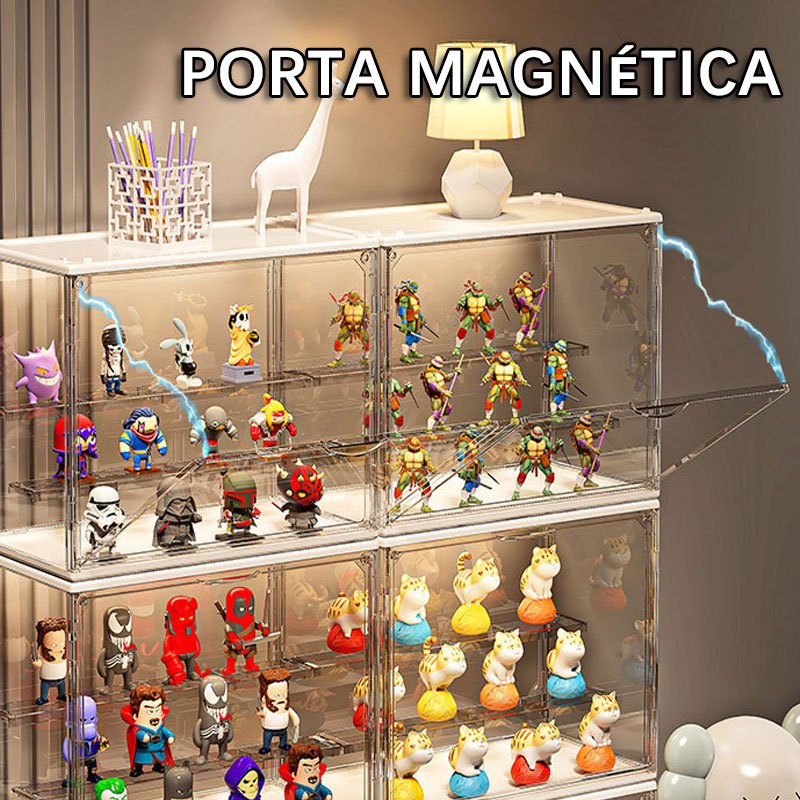 caixa expositor acrilico para miniaturas de carros bonecos colecionáveis 3 camadas 6 LED controle por voz