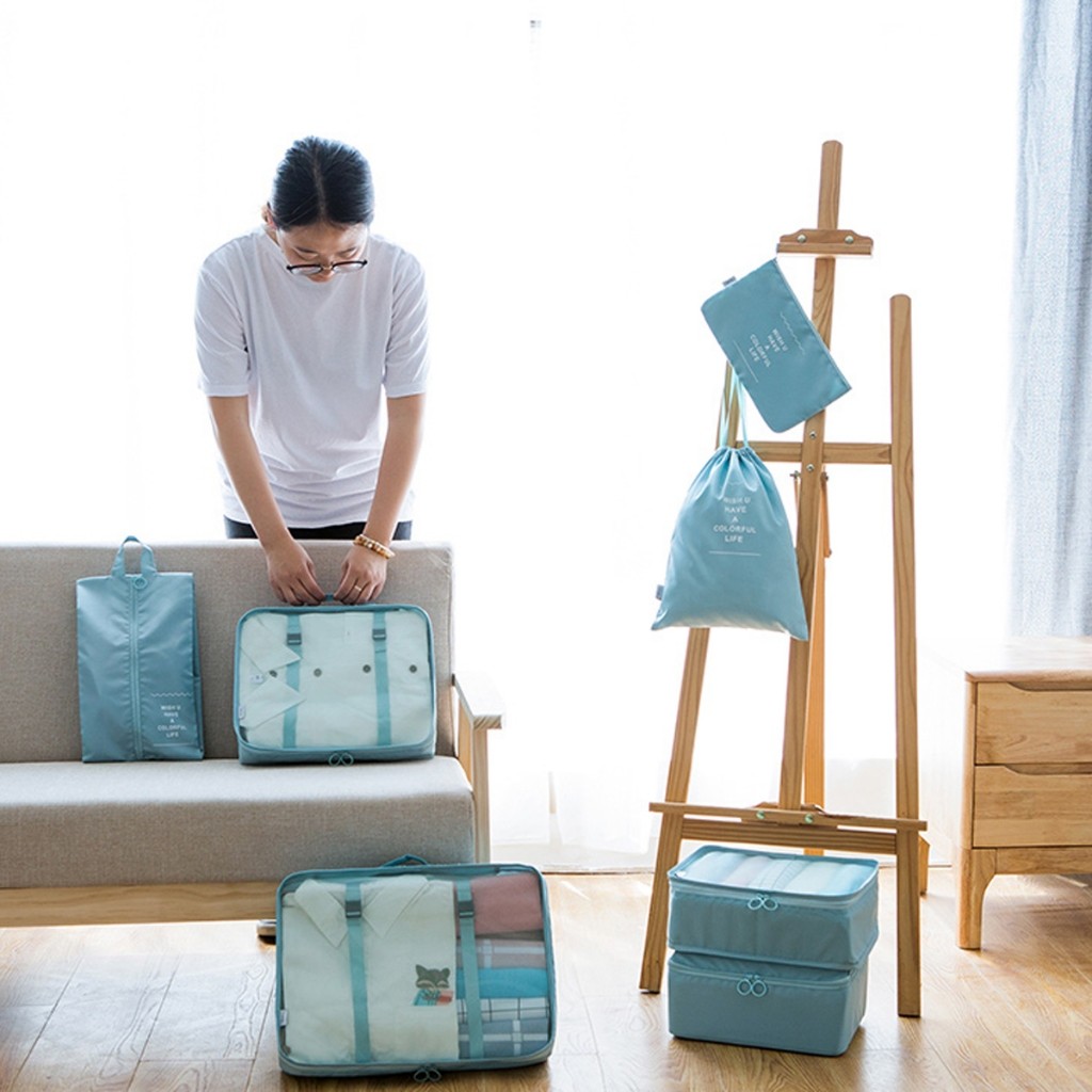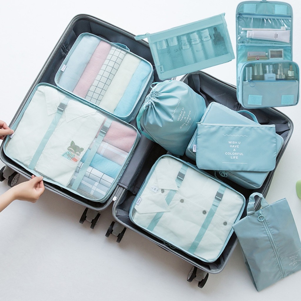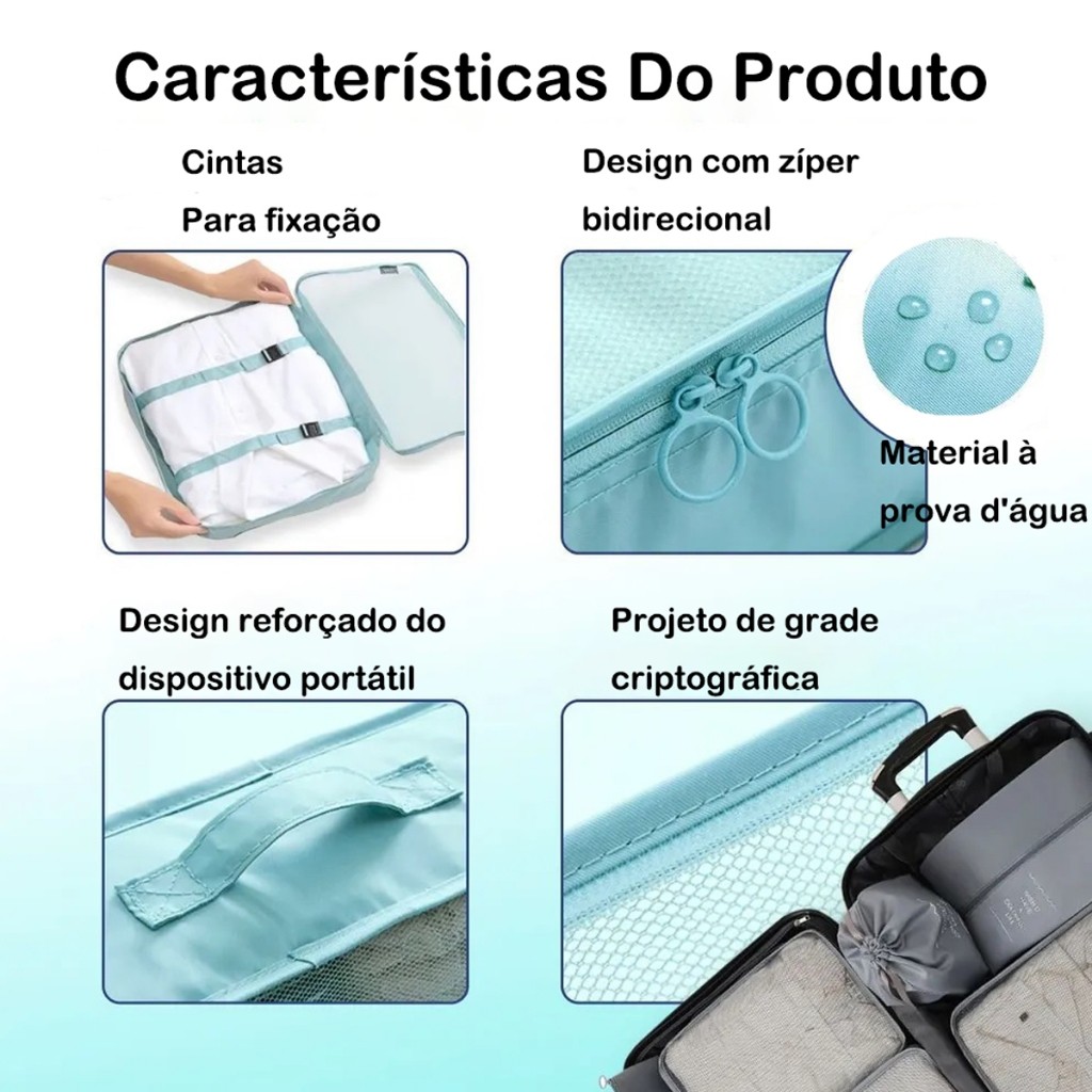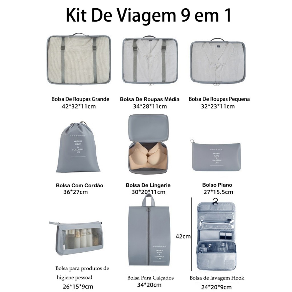 Kit 9 Bolsa Organizadora De Armazenamento De Mala De Viagem De Roupas Classificado Para CosméTicos Sapatos Lingerie