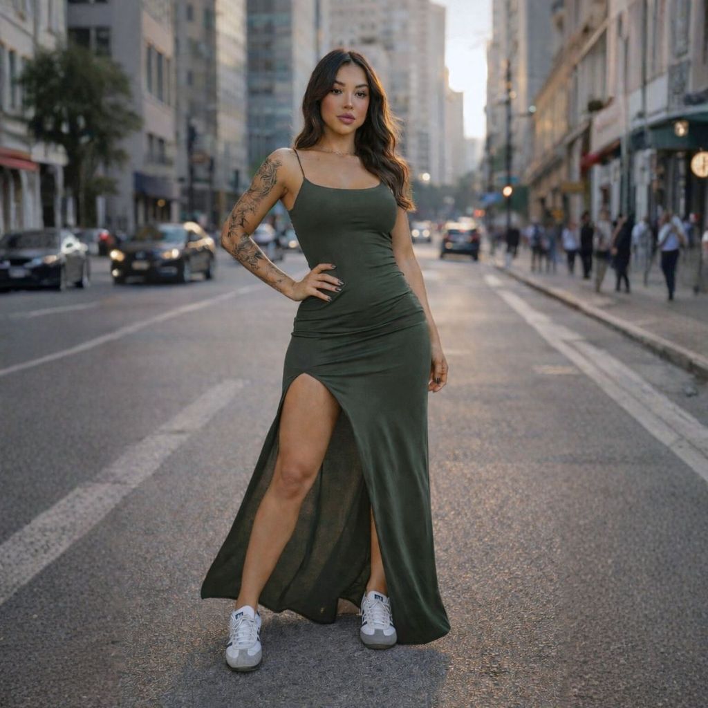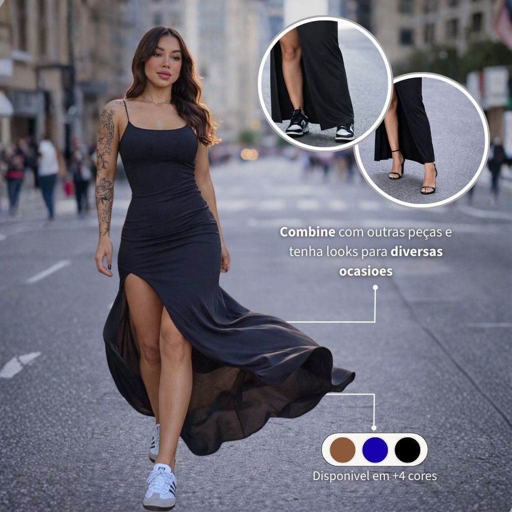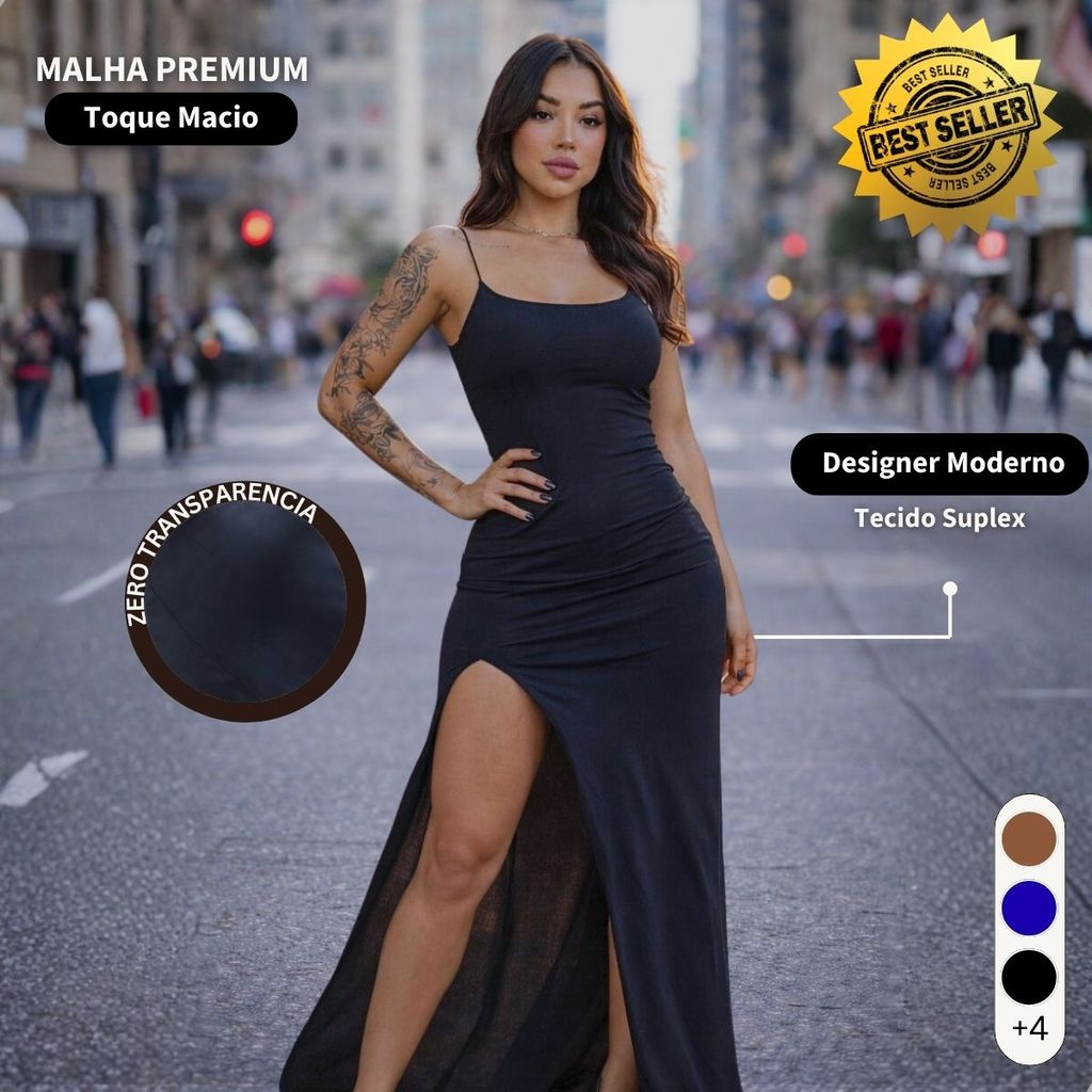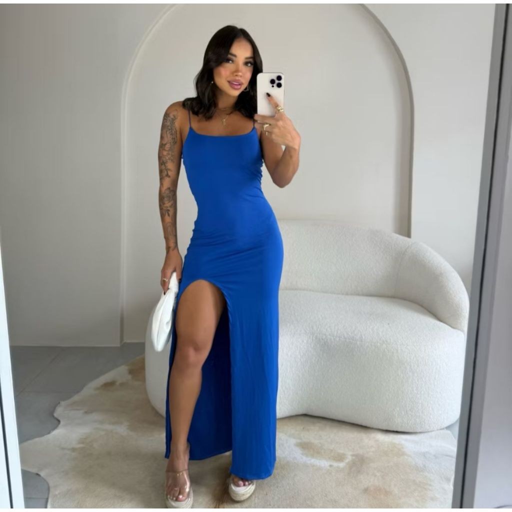 Vestido Longo Com Fenda Feminino Suplex Modelador Elegante Sensual Moda Gringa