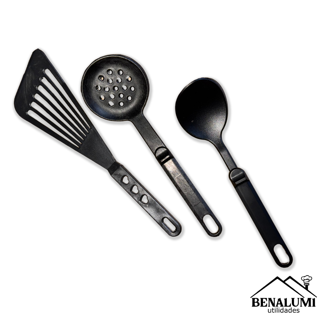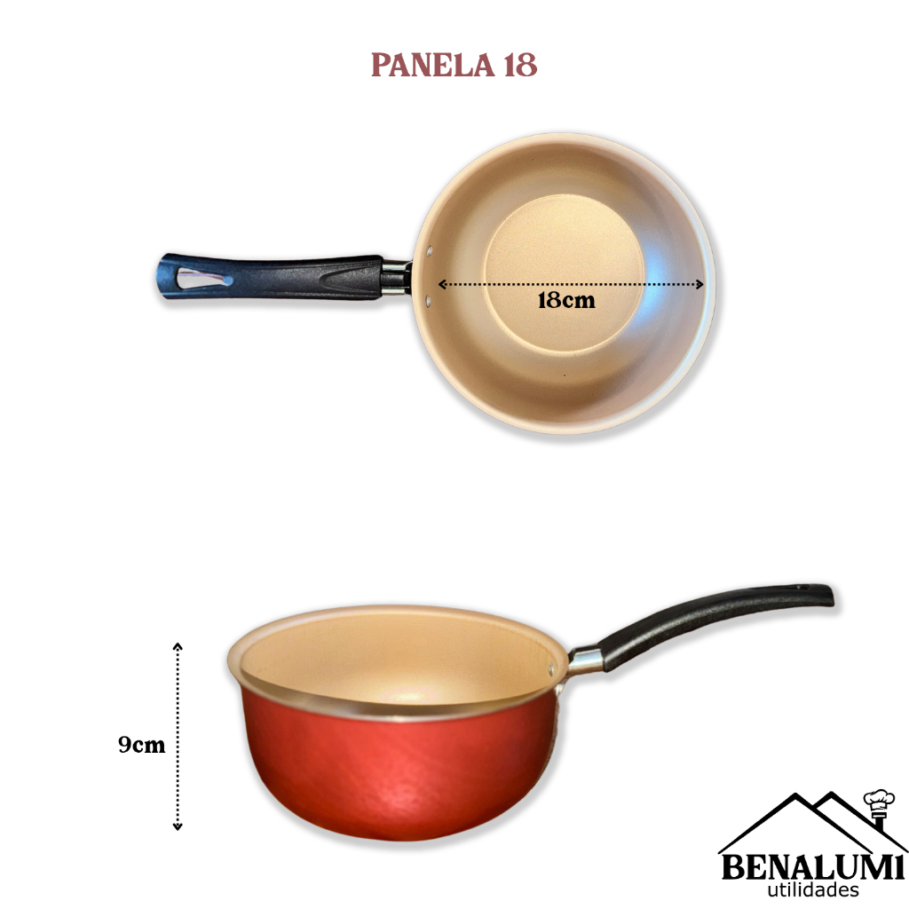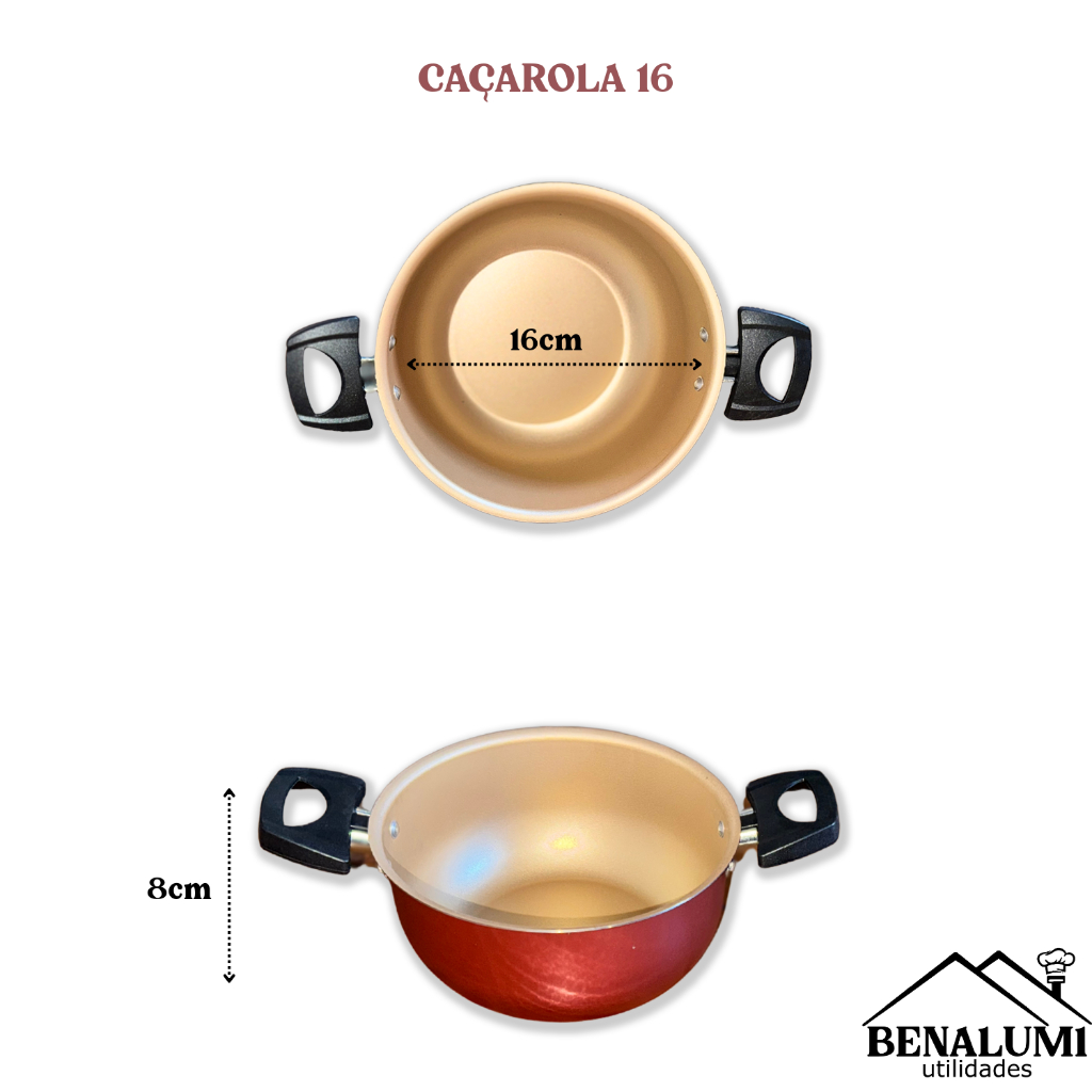 Kit Panelas e Frigideira Antiaderente Cereja com Tampa de Vidro + Utensílios Nylon