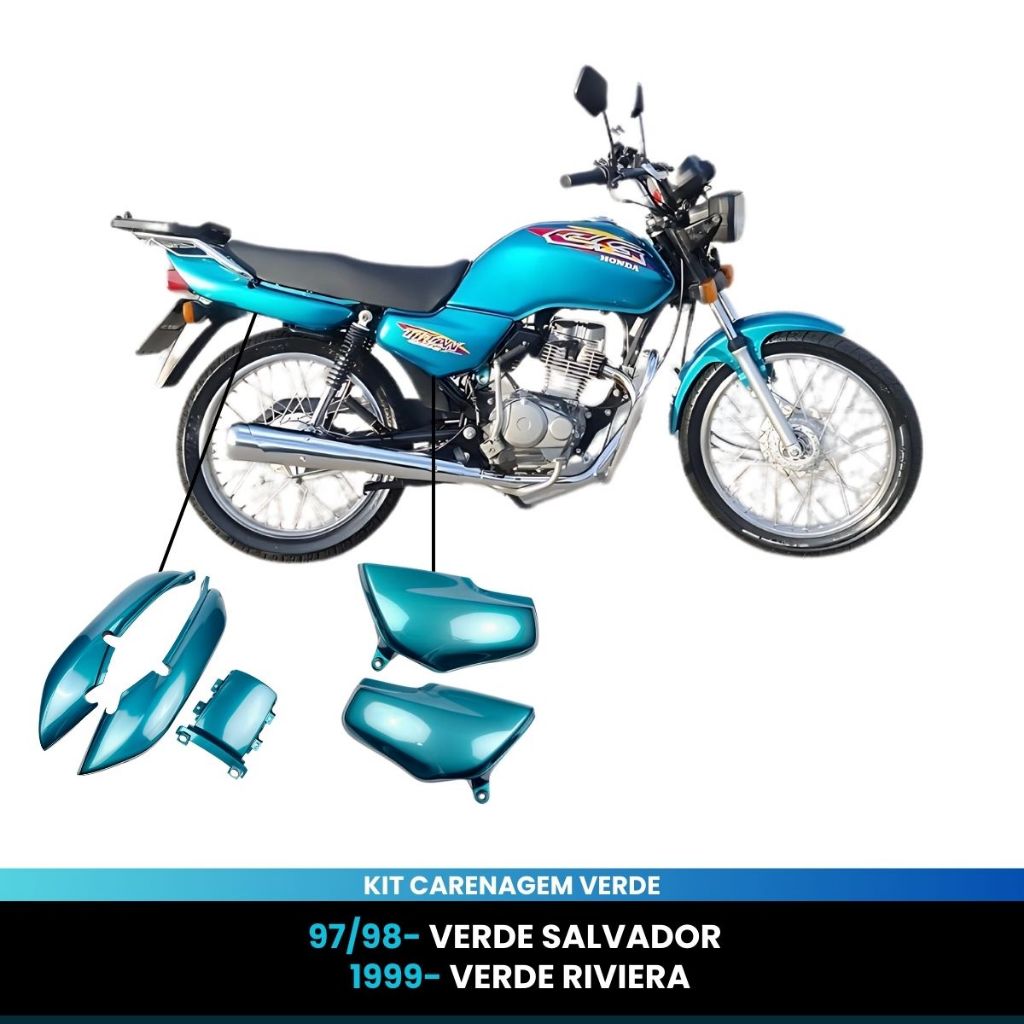 Carenagem Tampa Lateral (par) + Rabeta Titan 125 97 até 99 Verde Salvador Riviera C/Brilho Envernizado Rabeta + Tampa La