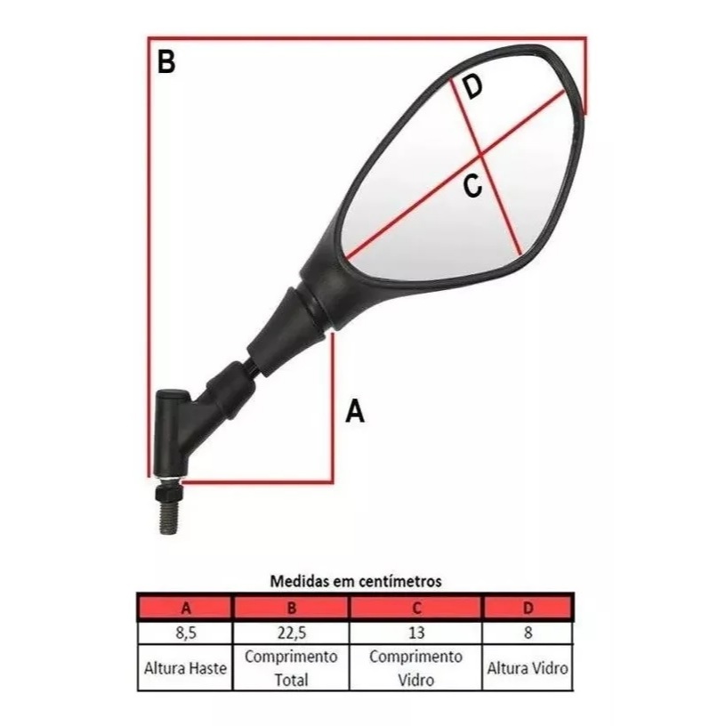 Retrovisor Moto Bmw Gs F800 Articulado Haste Curta Giro 360 Para Yamaha Fazer Ybr Lander Factor Xtz