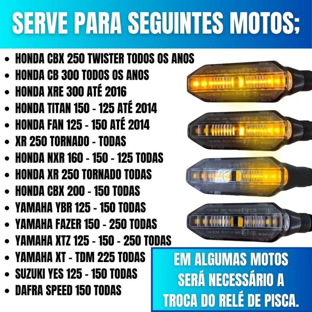 Pisca Moto Seta Led Sequencial Honda Cb250f Cb Twister Titan Fan Cb300 Xre Rosca