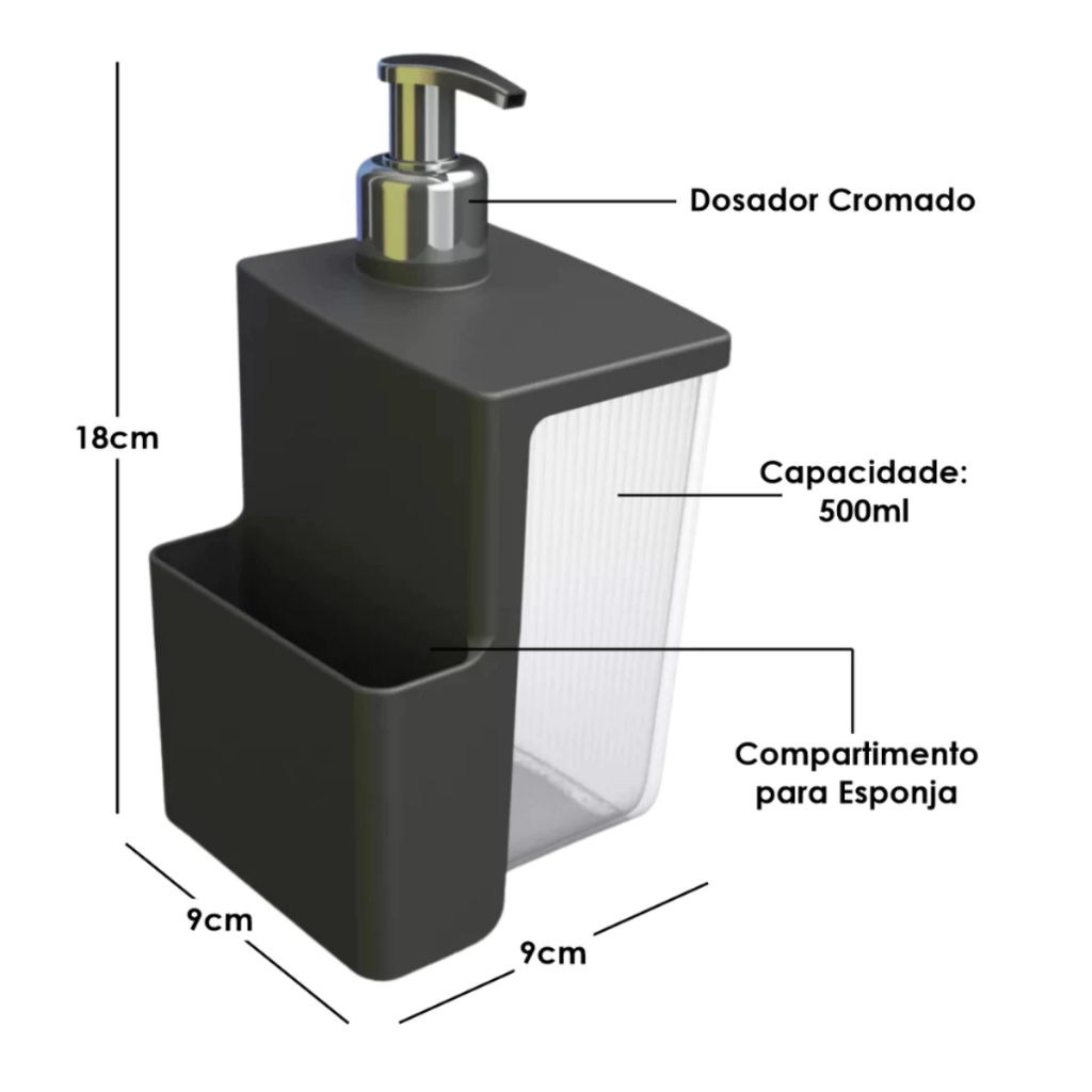 Kit Lixeira Pia 2,5 Litros + Porta Detergente Sabão + Rodinho de Pia Kit Cozinha 3 Peças + Esponja
