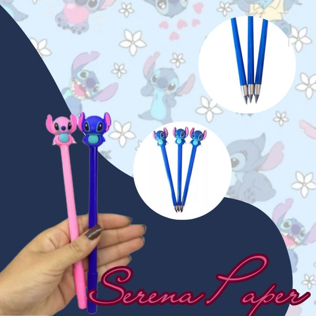 KIT PAPELARIA FOFA KAWAII STICH - 1 LÁPIS INFINITO + 1 CANETA MULTICORES