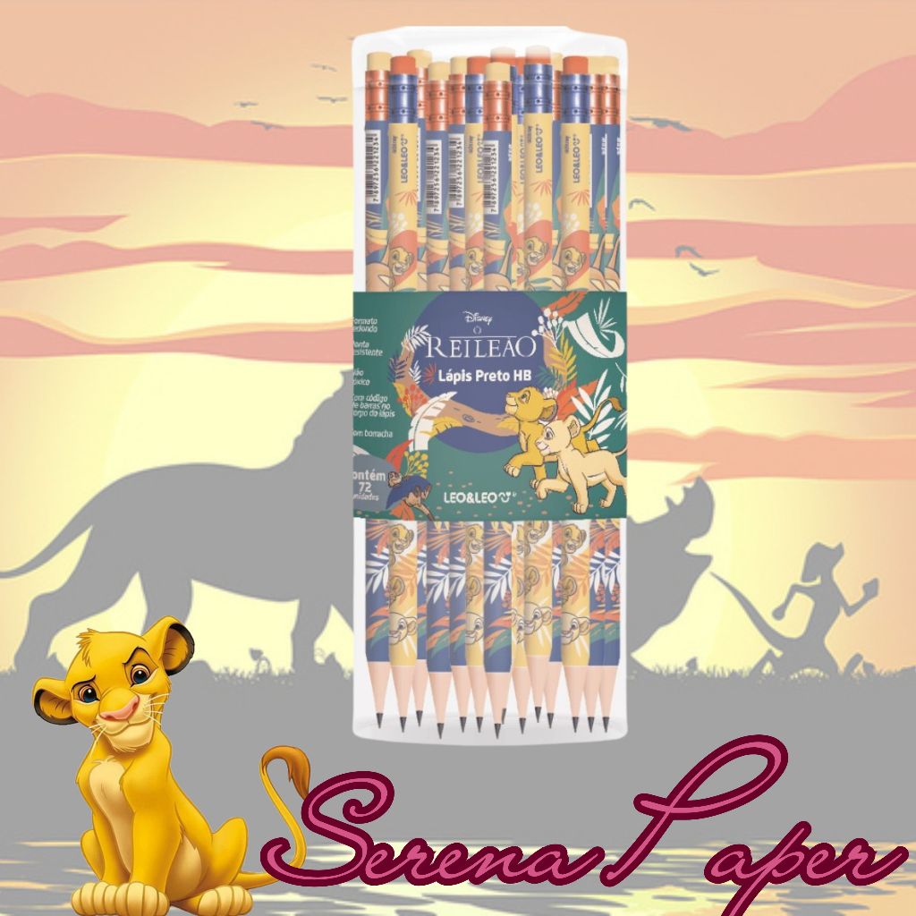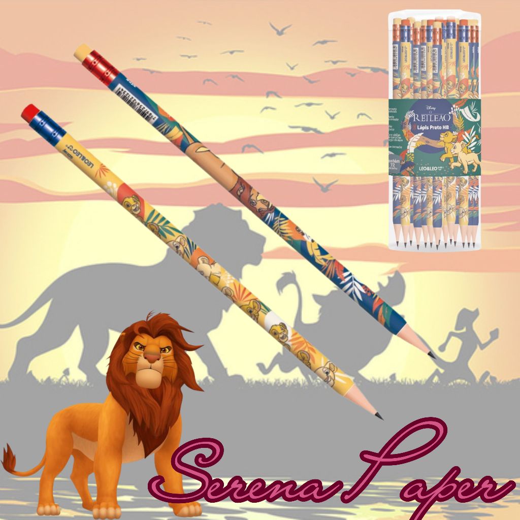 POTE COM 72 LÁPIS HB REI LEÃO COM BORRACHA / LEO&LEO / PAPELARIA FOFA KAWAII / MATERIAL ESCOLAR