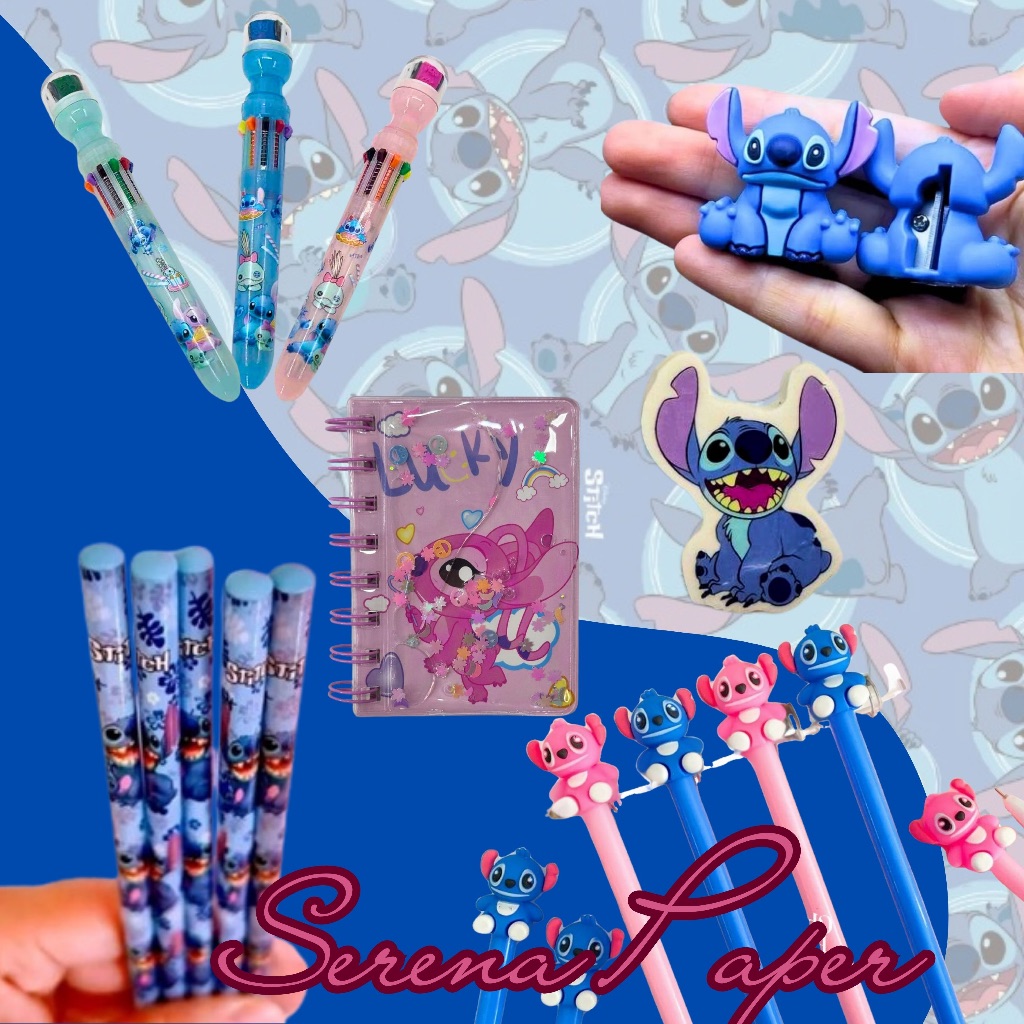 KIT STITCH (CANETA MULTI + CANETA PONTA FINA + BLOQUINHO + LAPIS GRAFITE + BORRACHA 3D + APONTADOR)