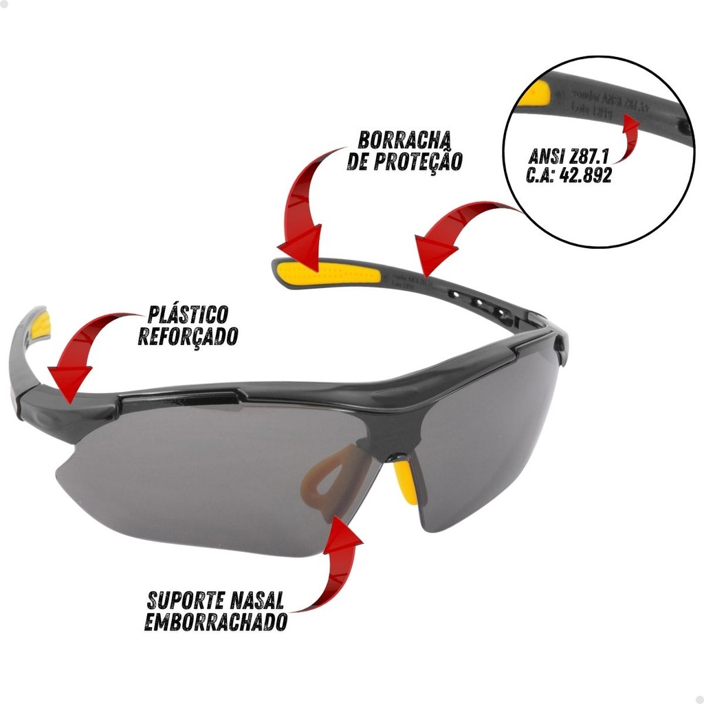Kit 03 Óculos de Proteção EPI Vonder Segurança Boxer Lente Fumê CA