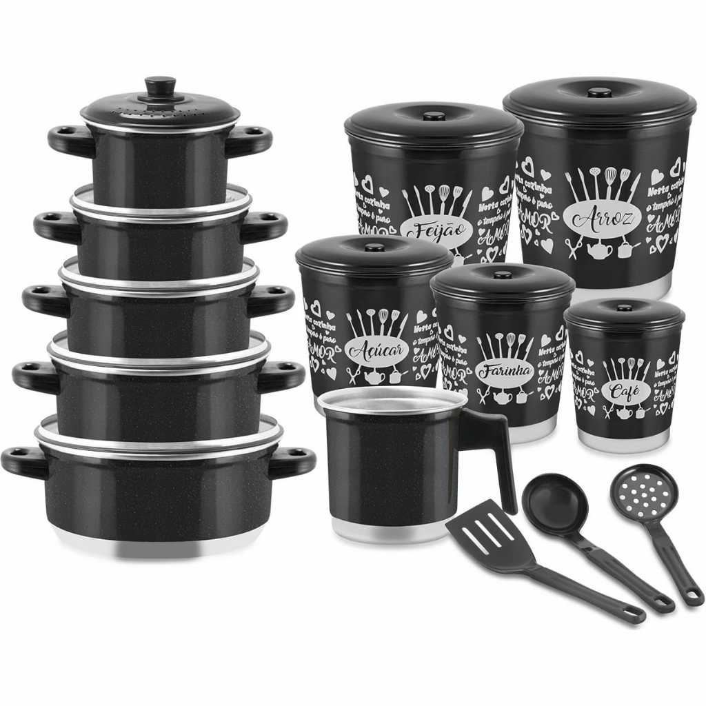 Jogo Panela Conjunto Caçarola + Leiteira + Jogo de Lata Mantimento