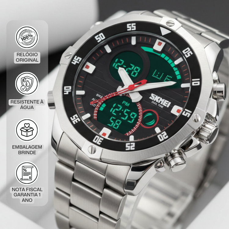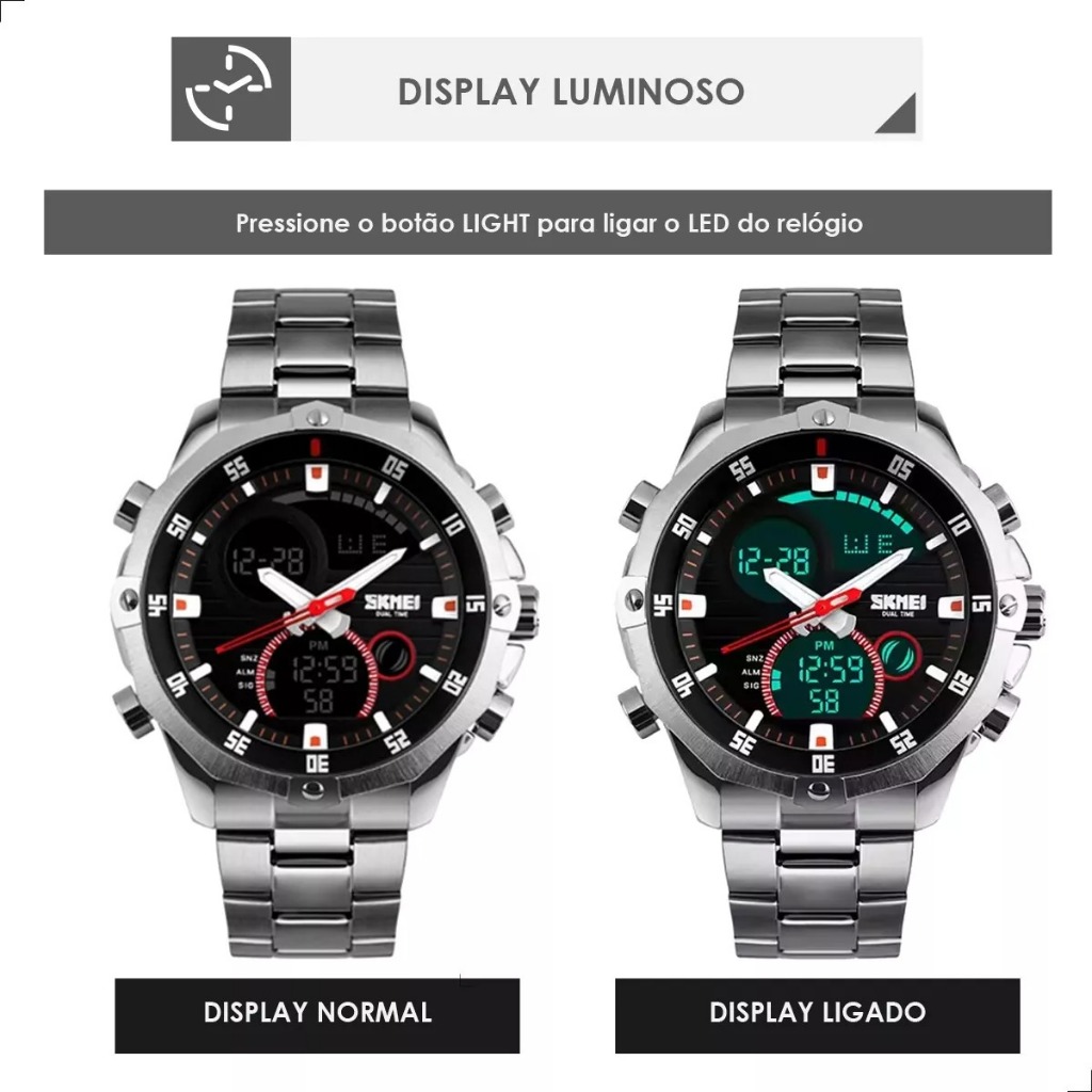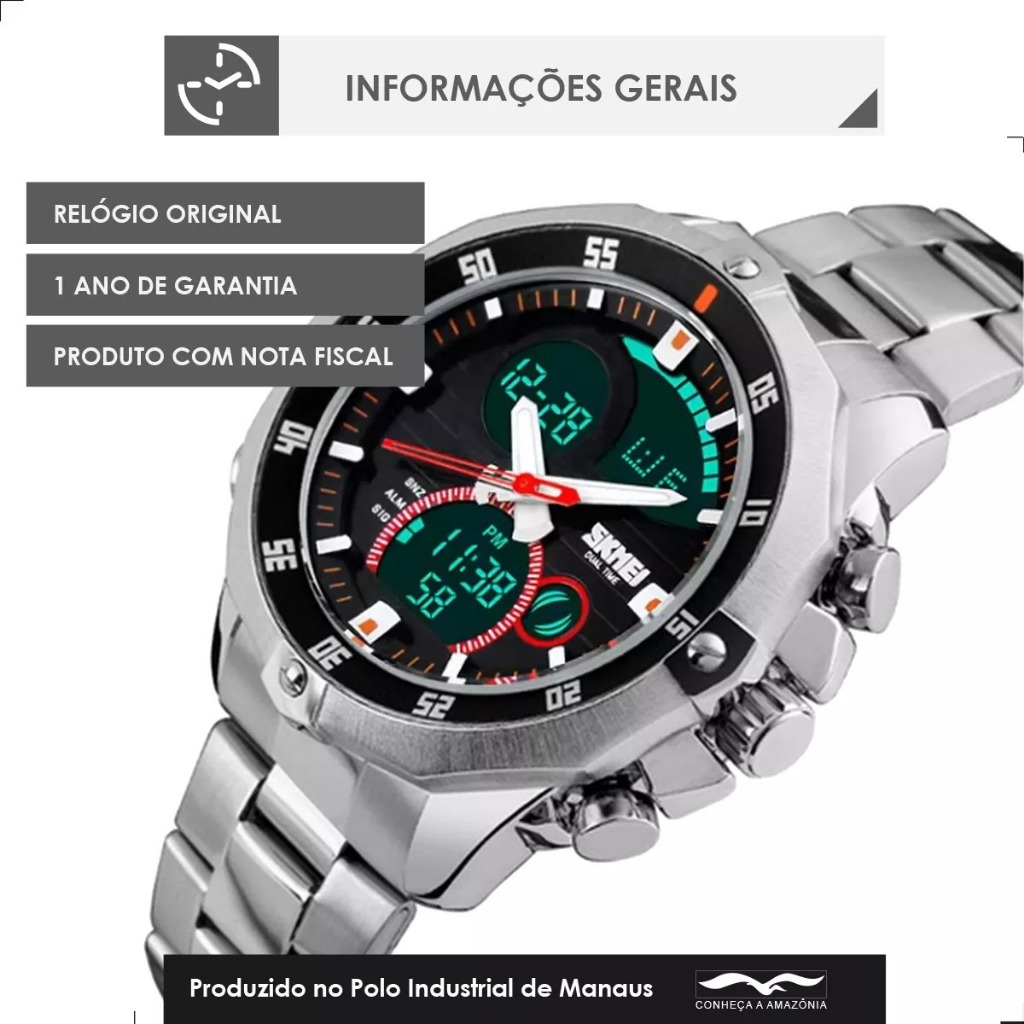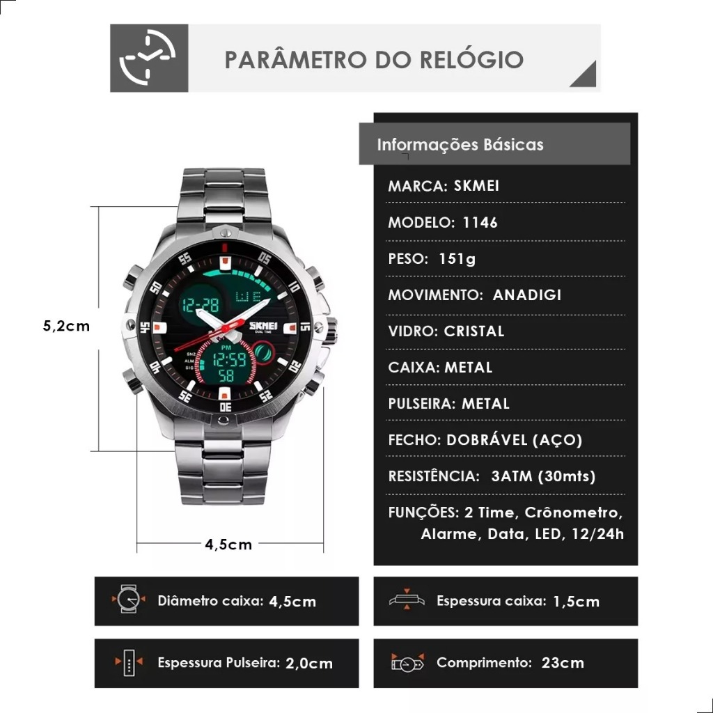 Relógio Masculino Skmei AnaDigi 1146 Prata e Preto, Original, Resistente a Agua 1 Ano de Garantia