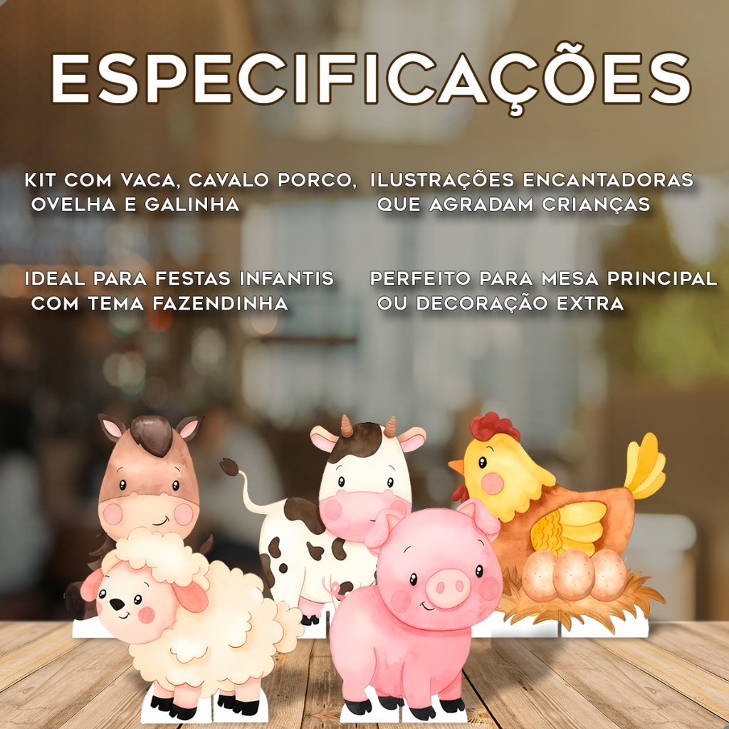 Display MDF Fazendinha 20cm Decoração Festa Infantil Animais Cavalo Vaca Ovelha Porco Galinha