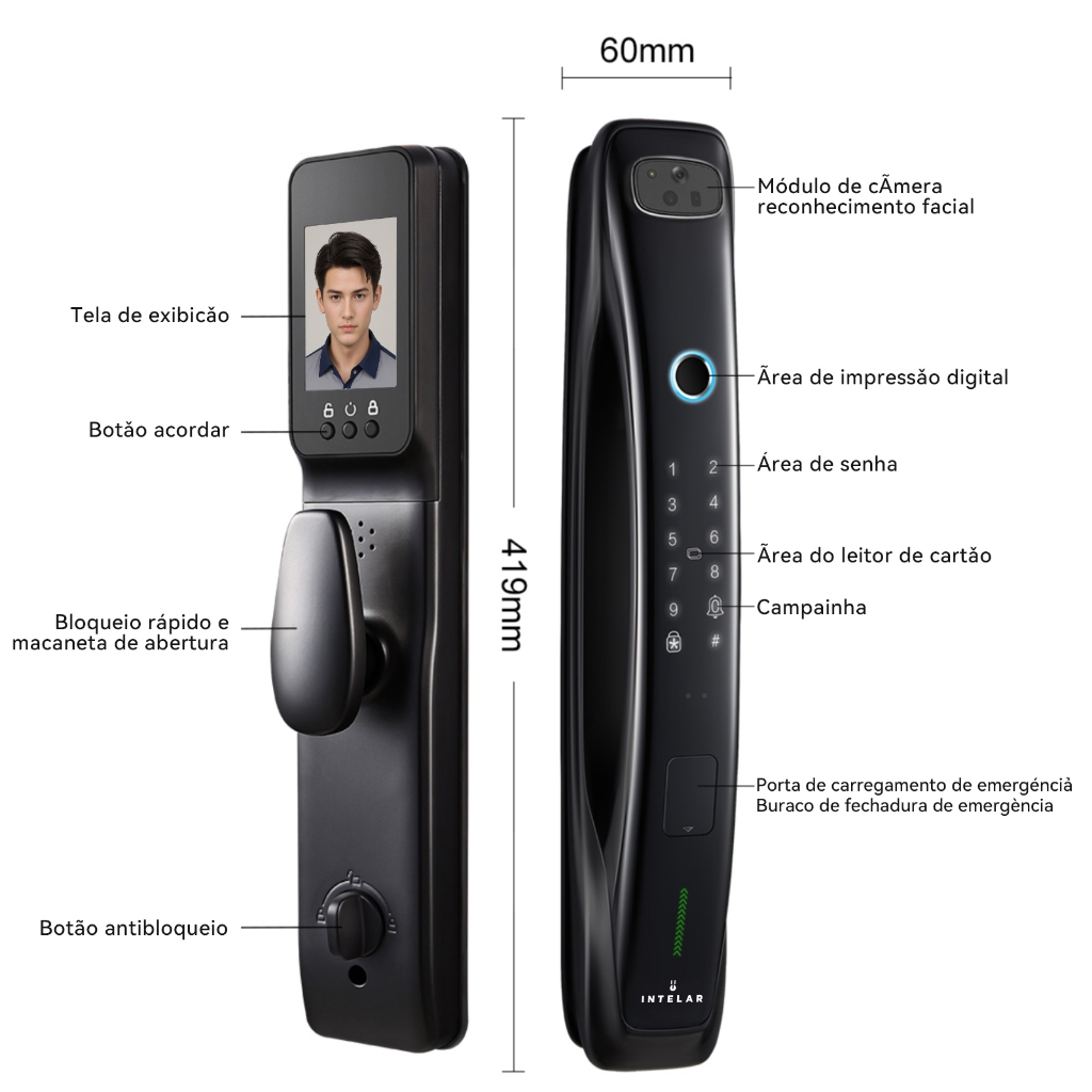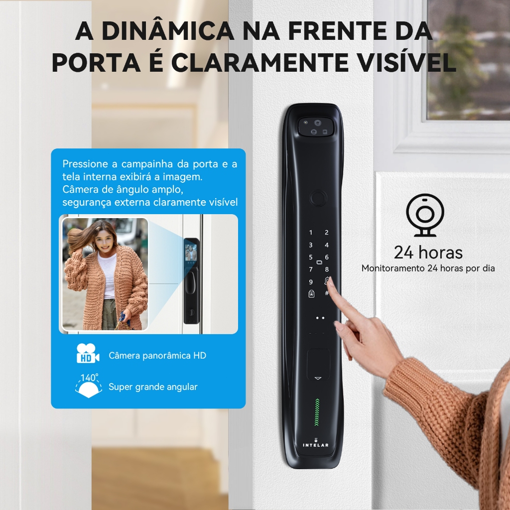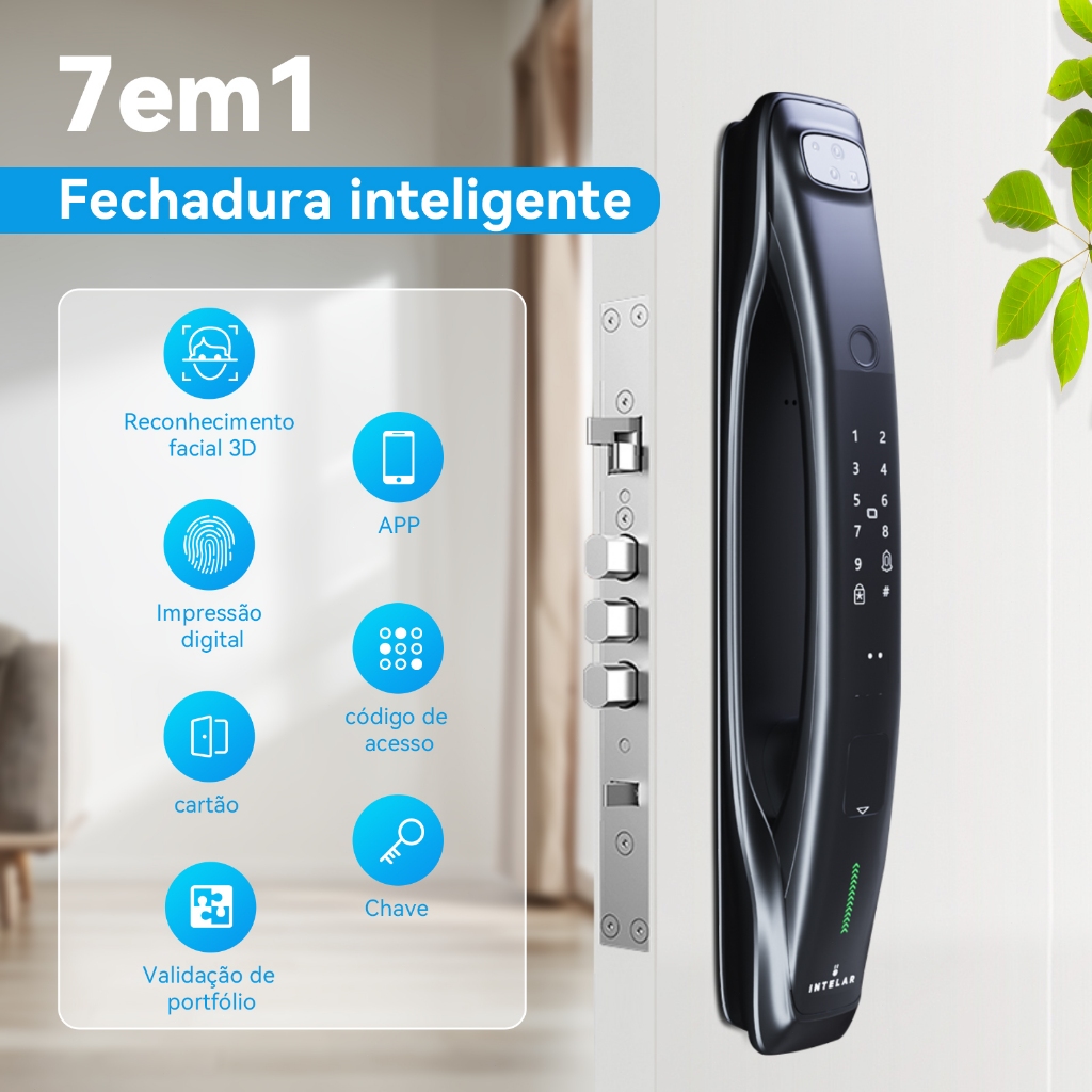 Fechadura Eletrônica Digital Inteligente Câmera Chave Touch Intelar X3 com Reconhecimento Facial 3D , Digital Biométrica