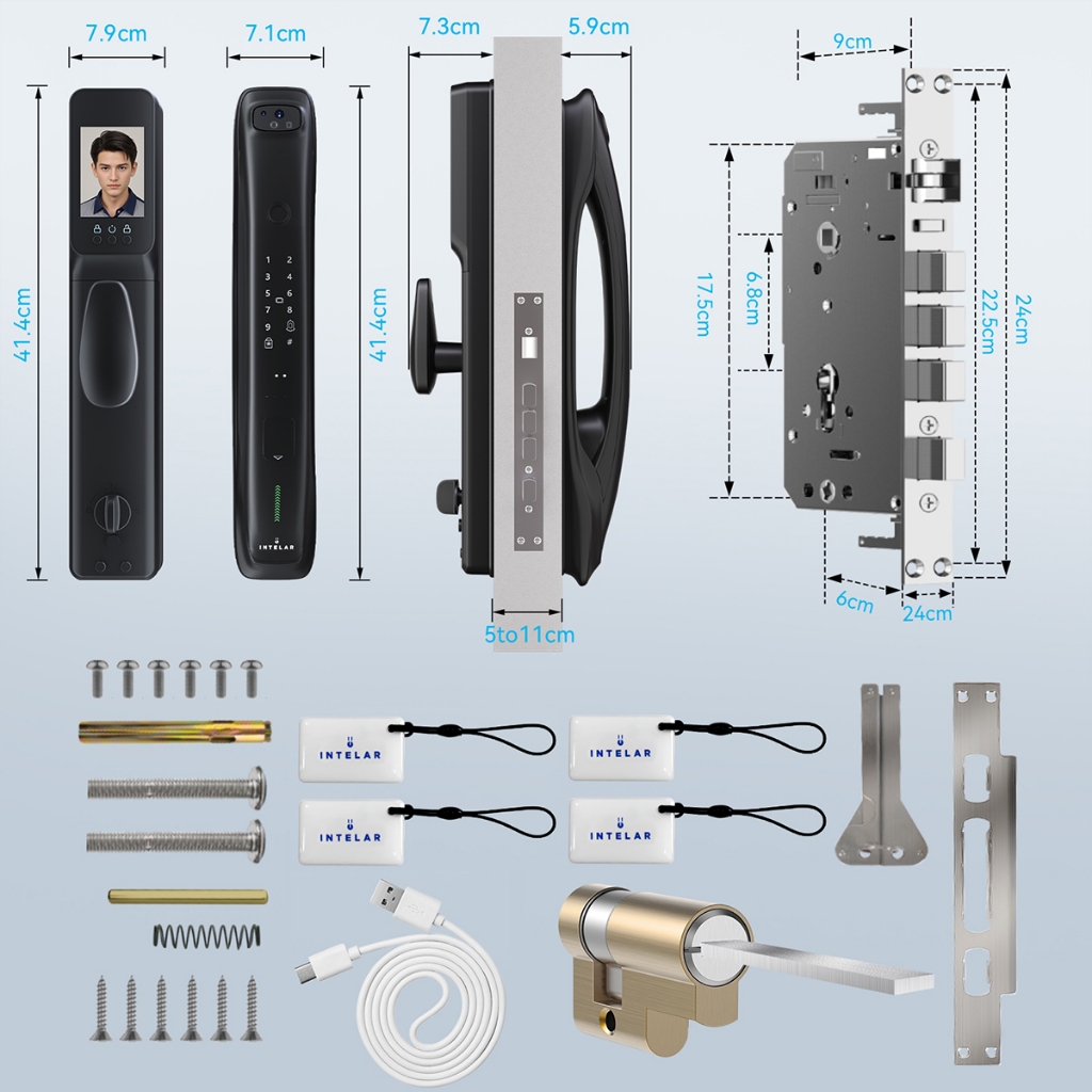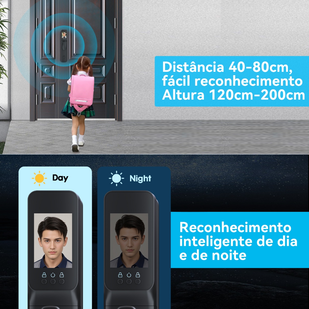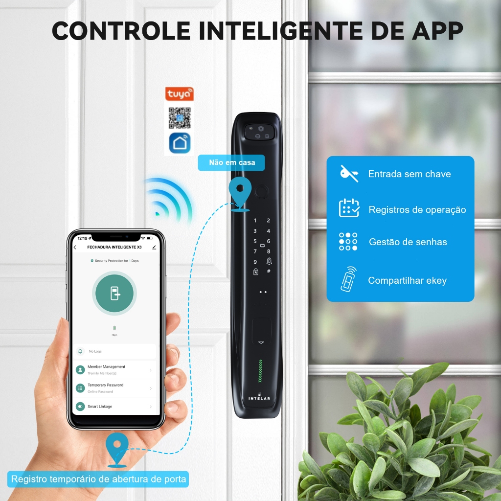 Fechadura Eletrônica Digital Inteligente Câmera Chave Touch Intelar X3 com Reconhecimento Facial 3D , Digital Biométrica