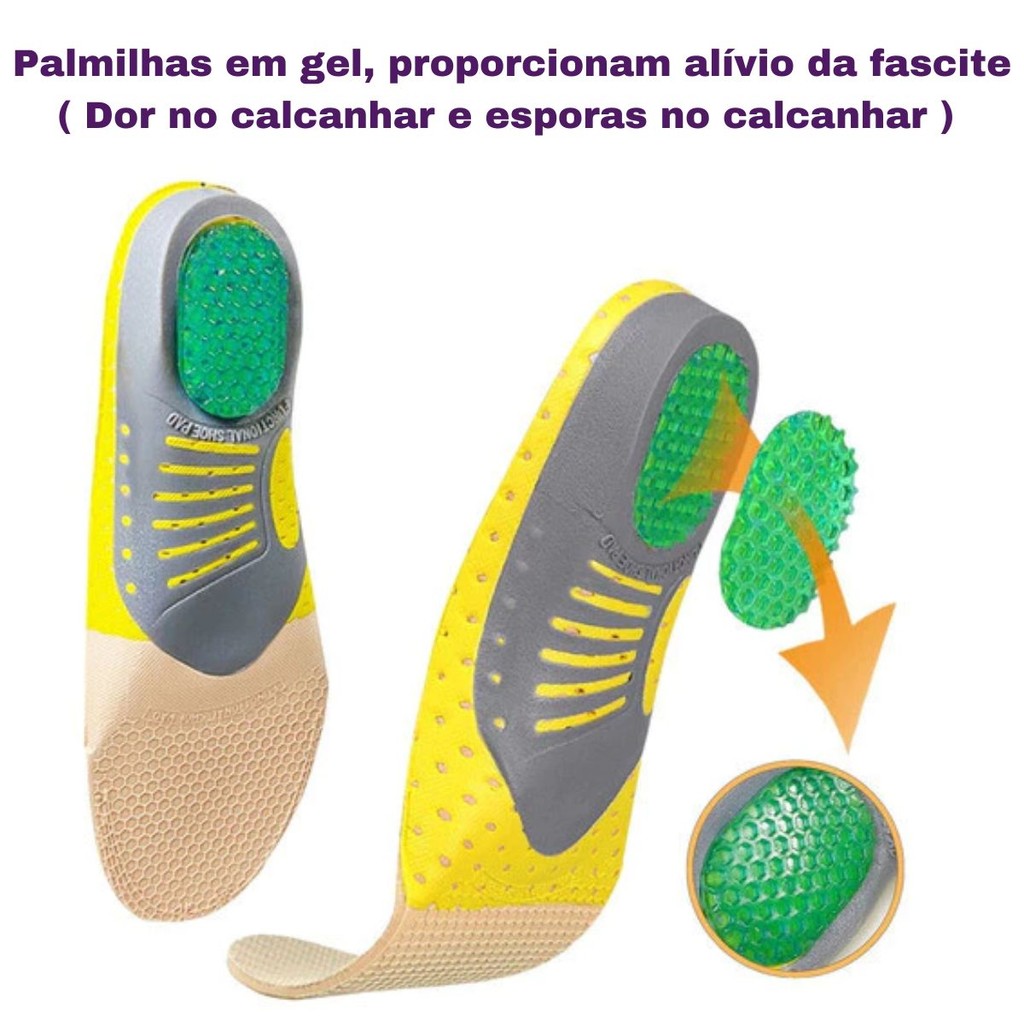 Kit 2 Pares Palmilha Ortopédica Fascite Esporão Pé Chato Dor