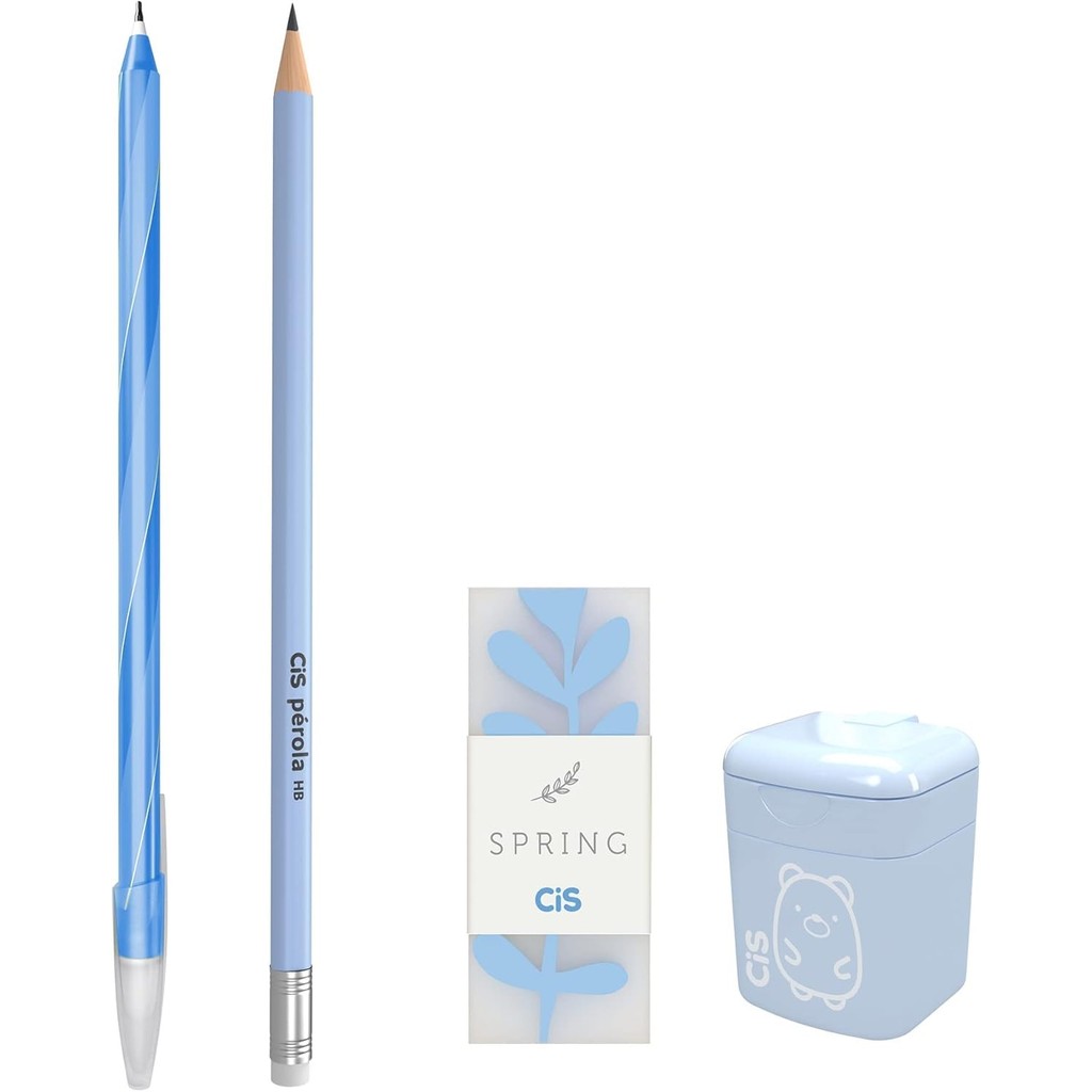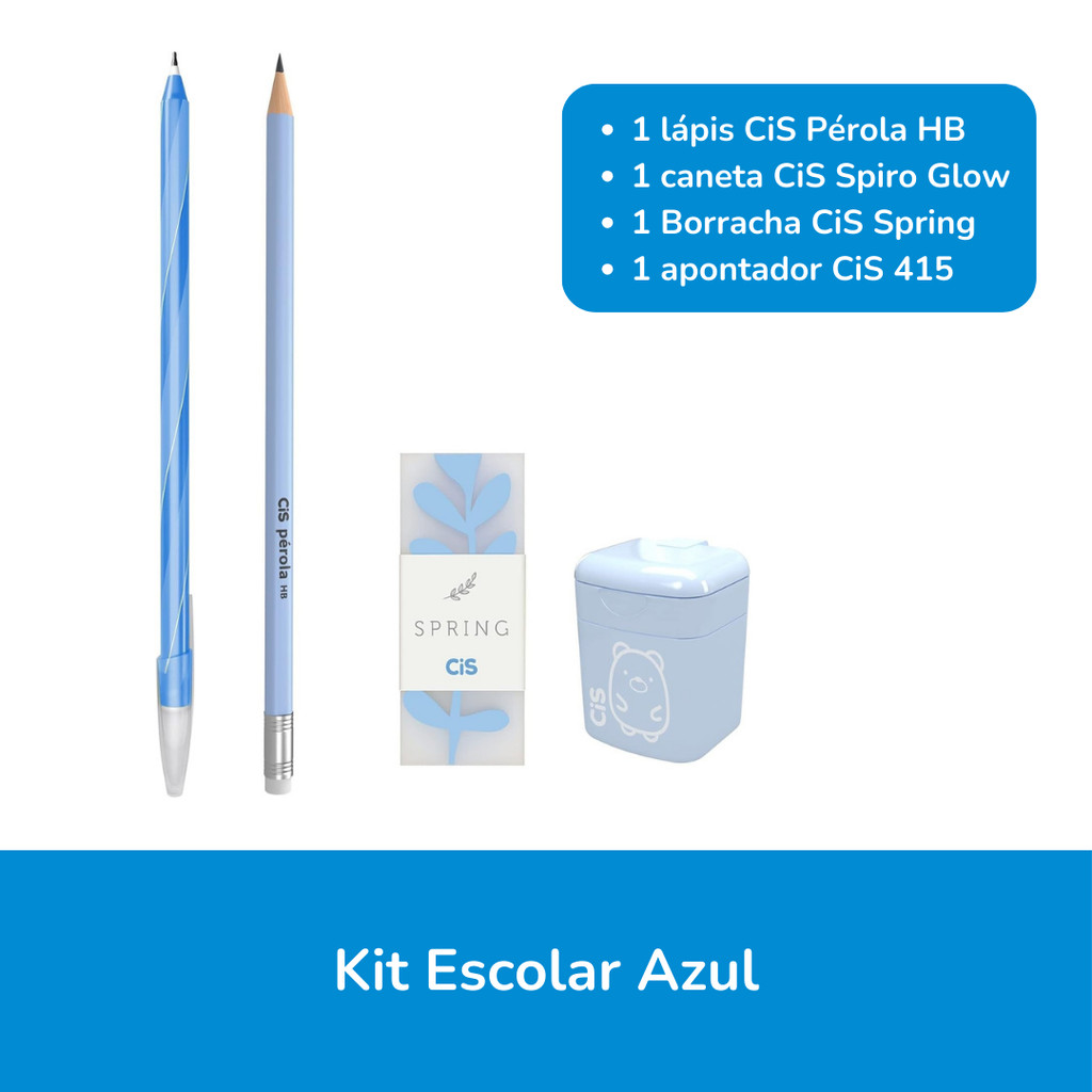 KIT ESCOLAR AZUL CIS COLORS CANETA, LAPIS, APONTADOR, BORRACHA