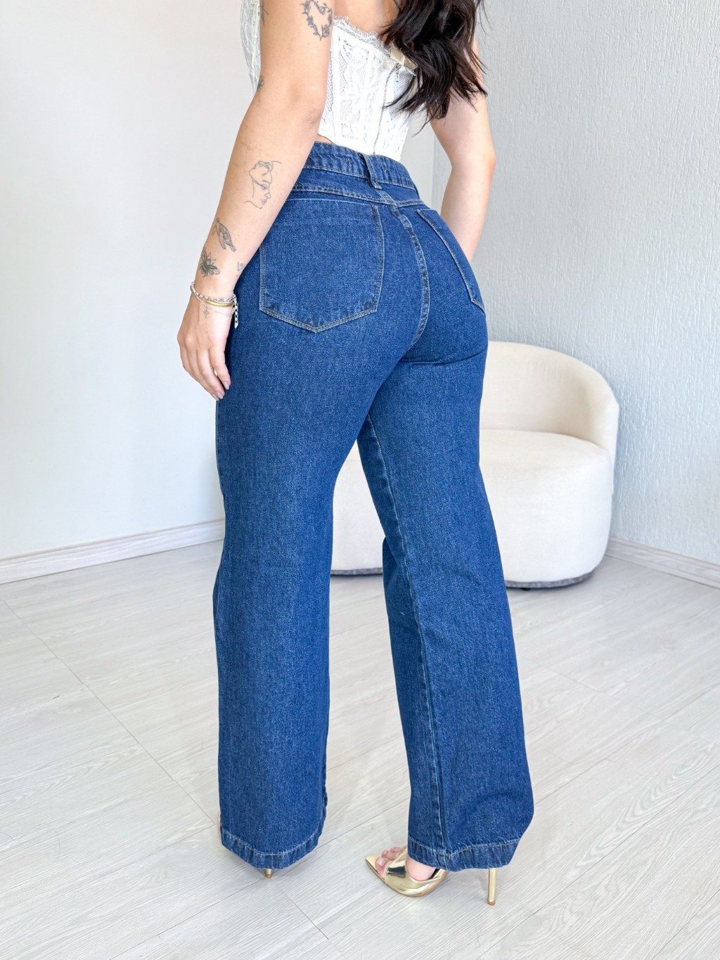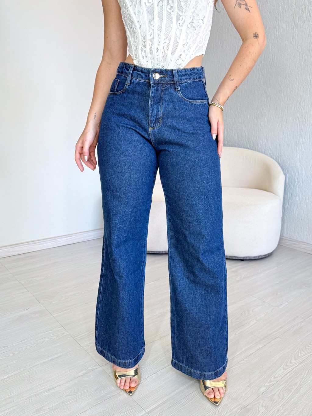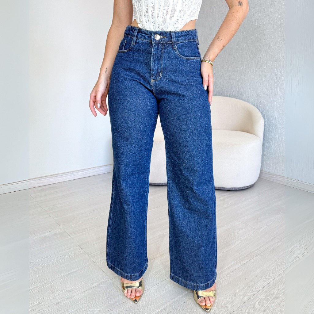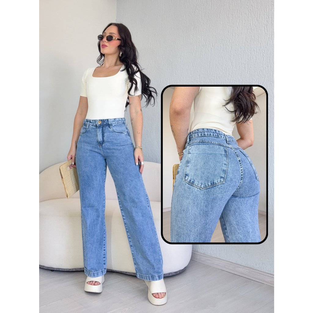 Calça Jeans Wide Leg Lisa Feminina Cintura Alta Levanta Bumbum Pantalona 34 ao 46 Casual