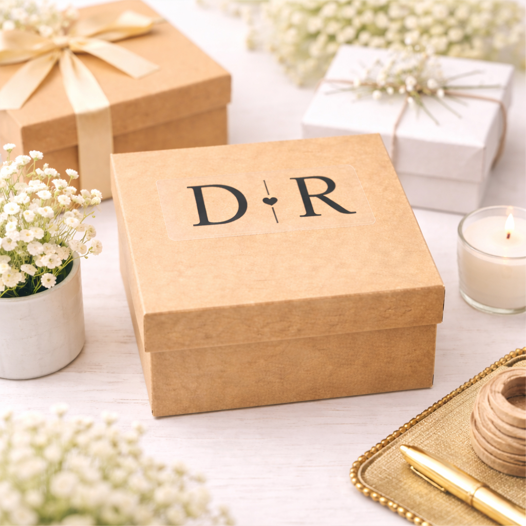 Kit Adesivos Personalizados Convite de Padrinhos Caixa de MDF Casamento Lembrancinha 6,5 x 4,5cm