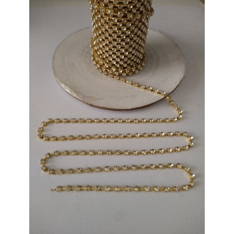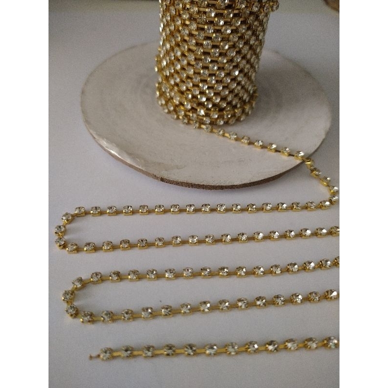 Corrente Strass Cristal Ss12 Dourado 10 Metros Promoção