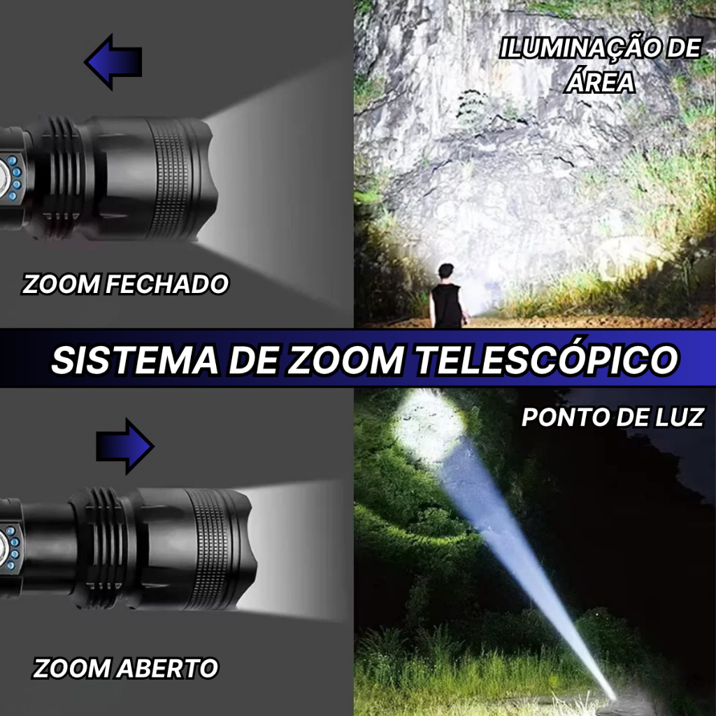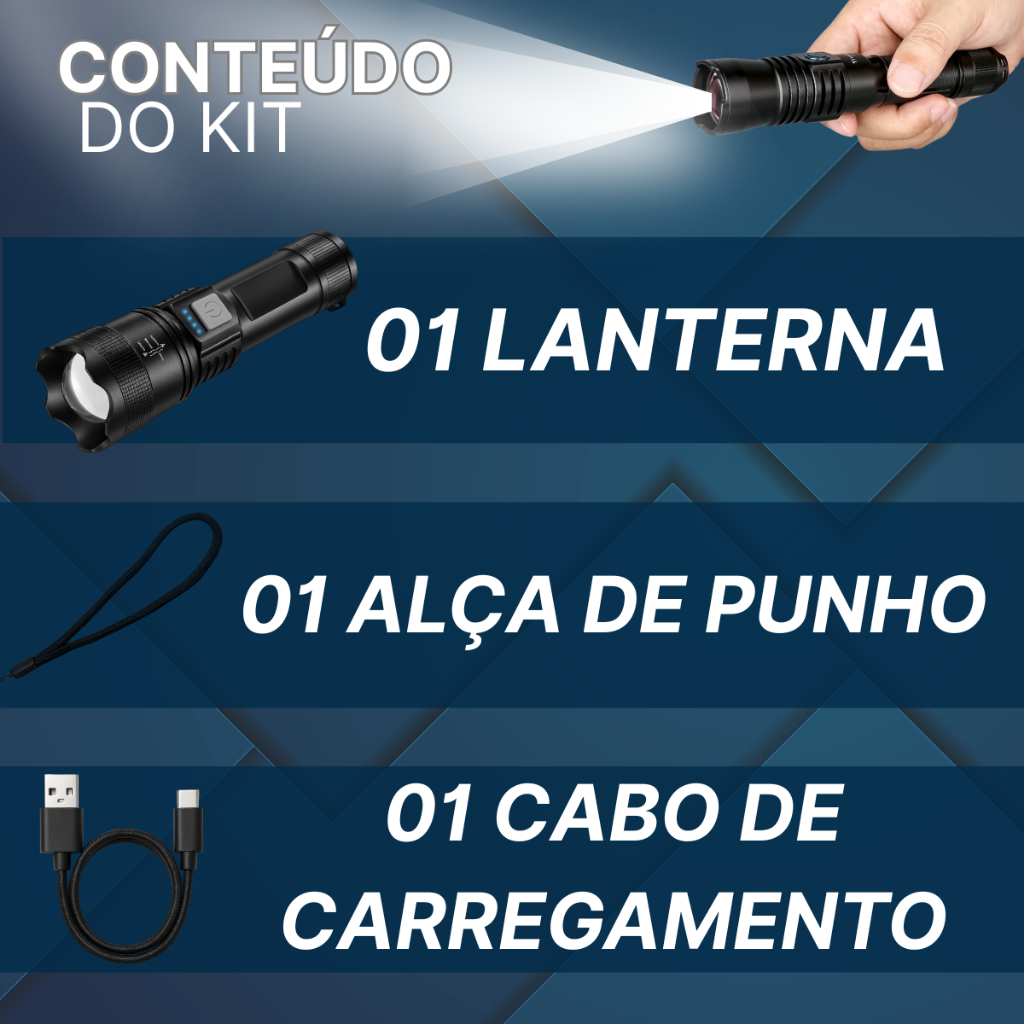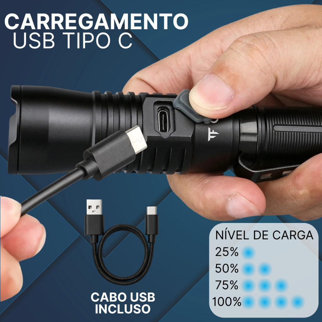 Lanterna Tática Led Recarregável USB A Mais Potente Com Zoom Preta