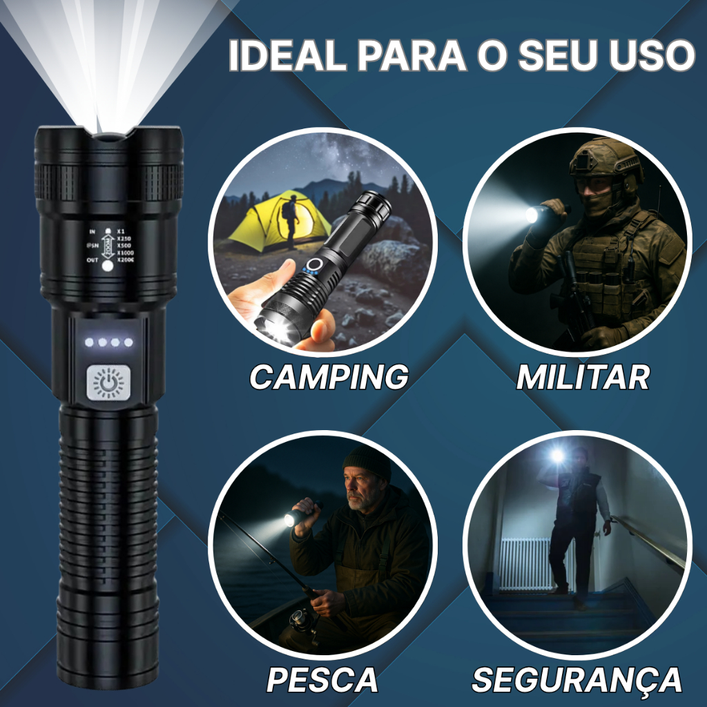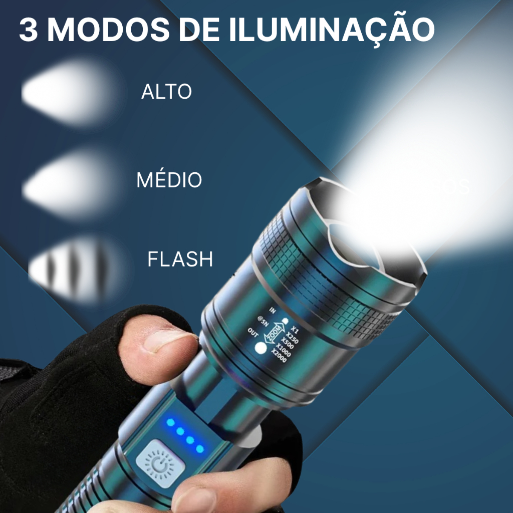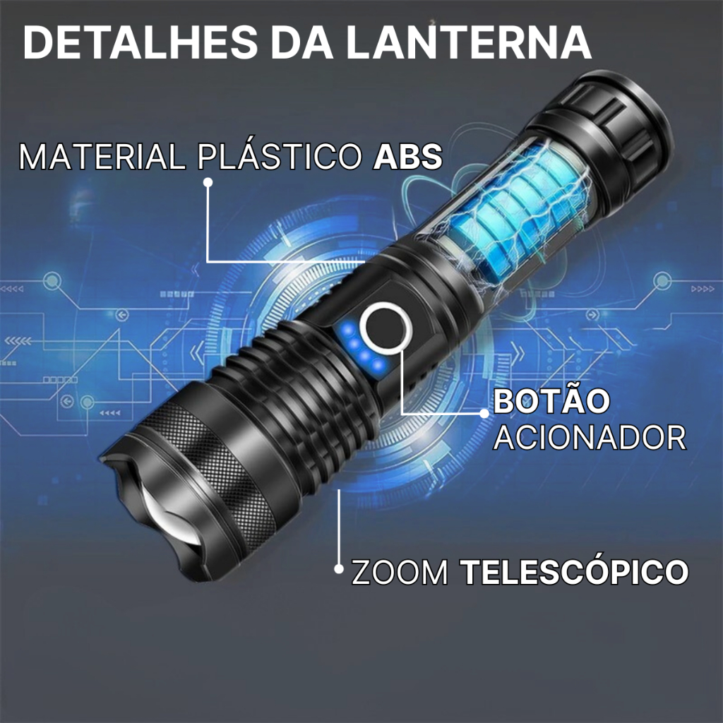 Lanterna Tática Led Recarregável USB A Mais Potente Com Zoom Preta