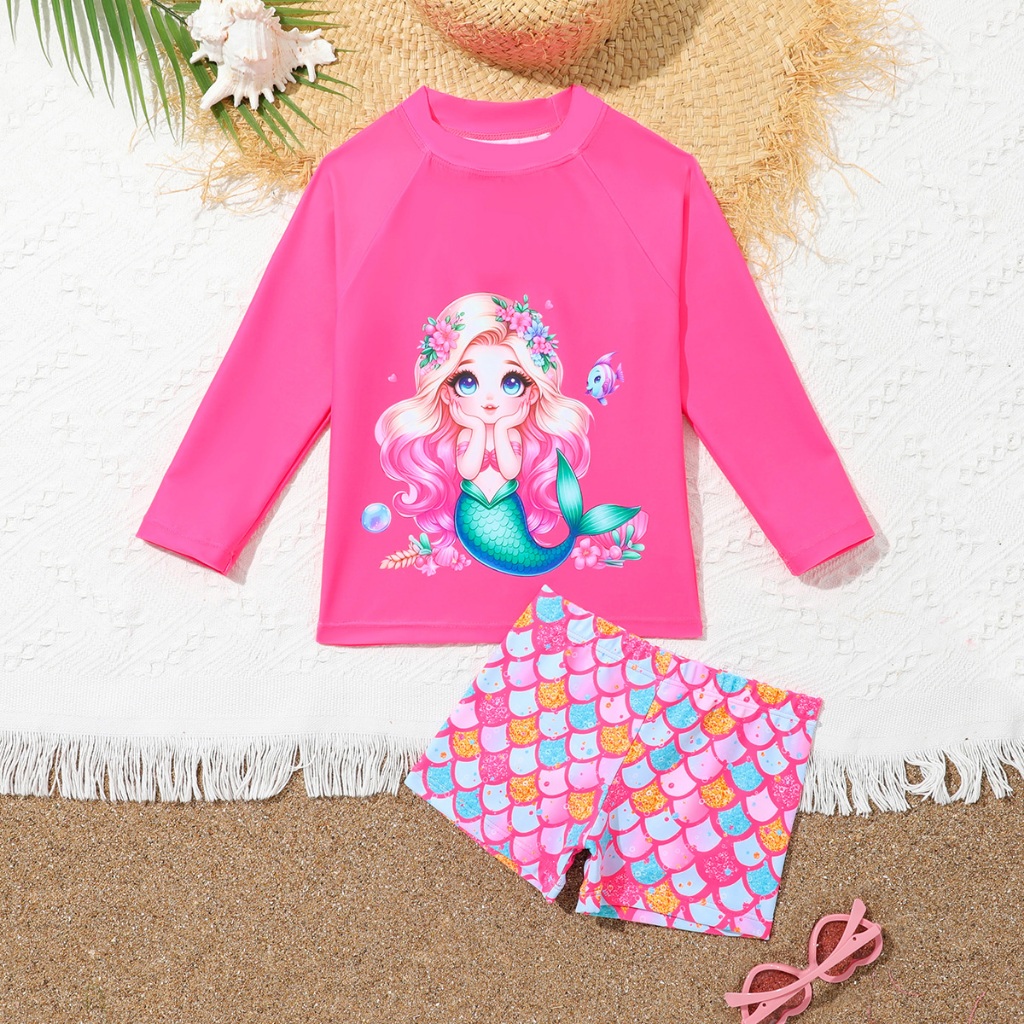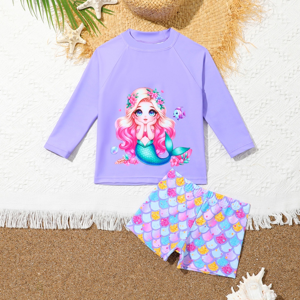 NB VEST Conjunto de Praia Infantil com Estampa de Sereia e Detalhes Charmosos 2024 B3122