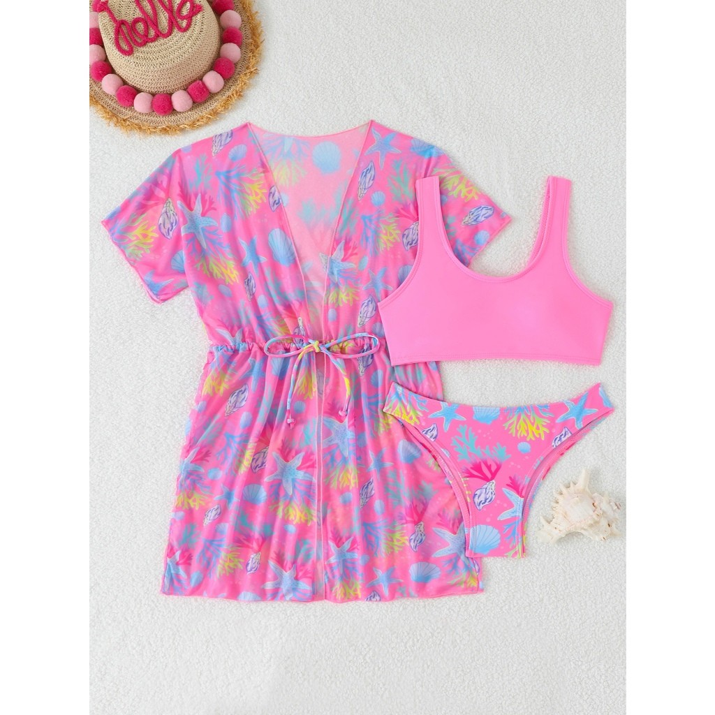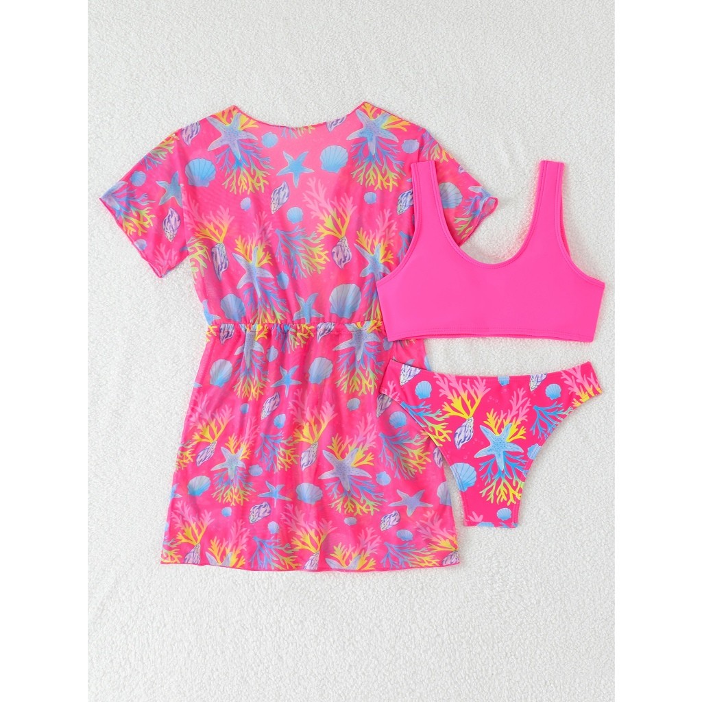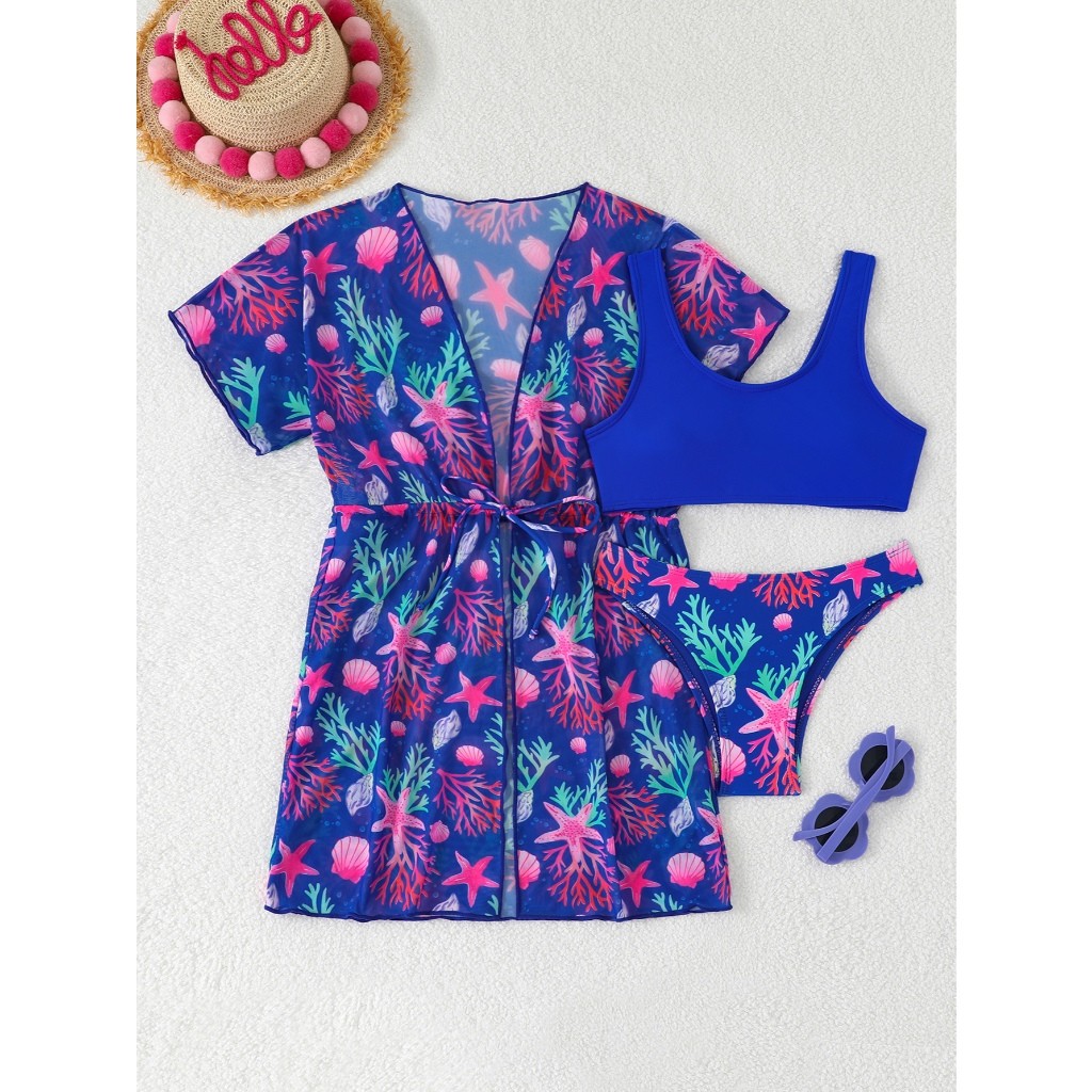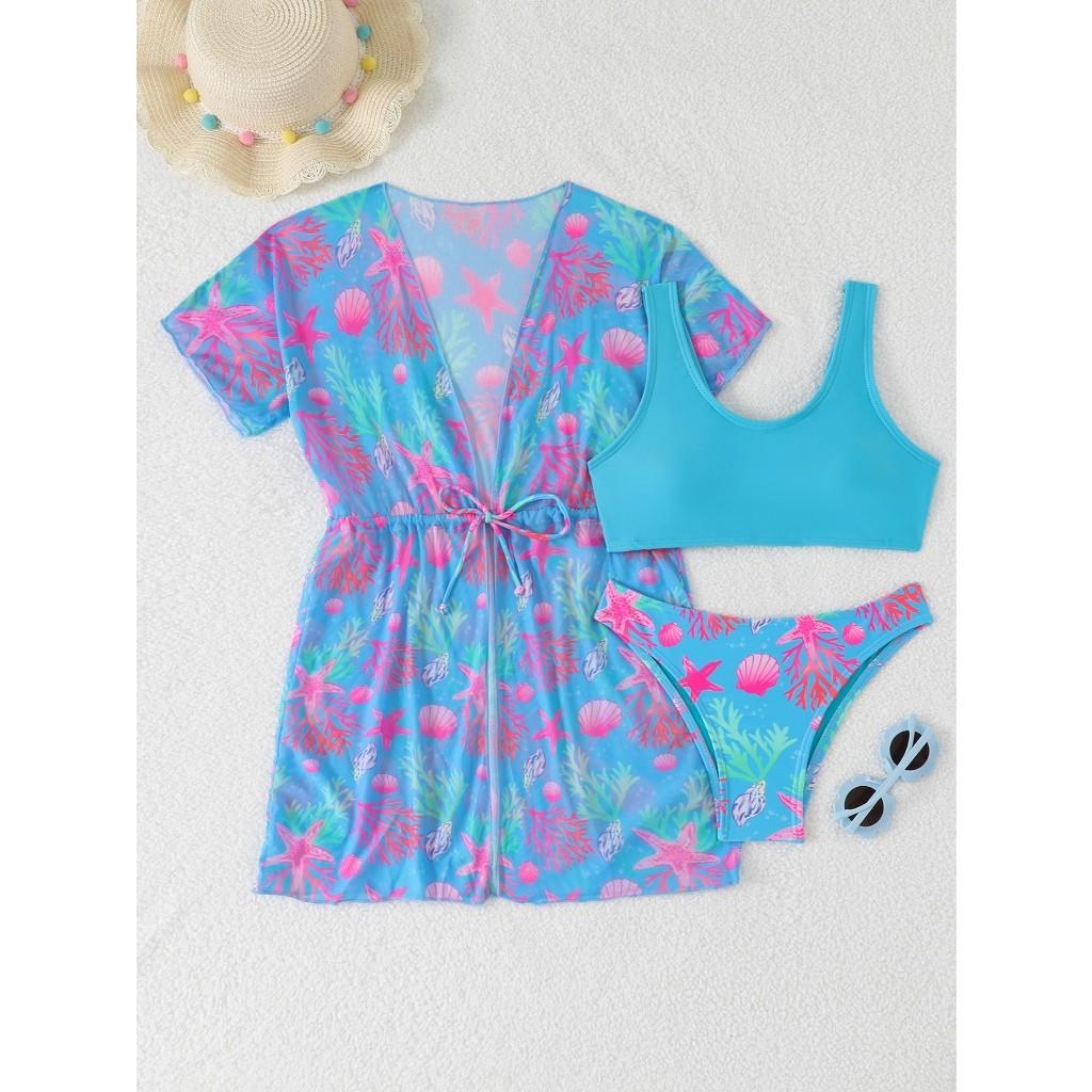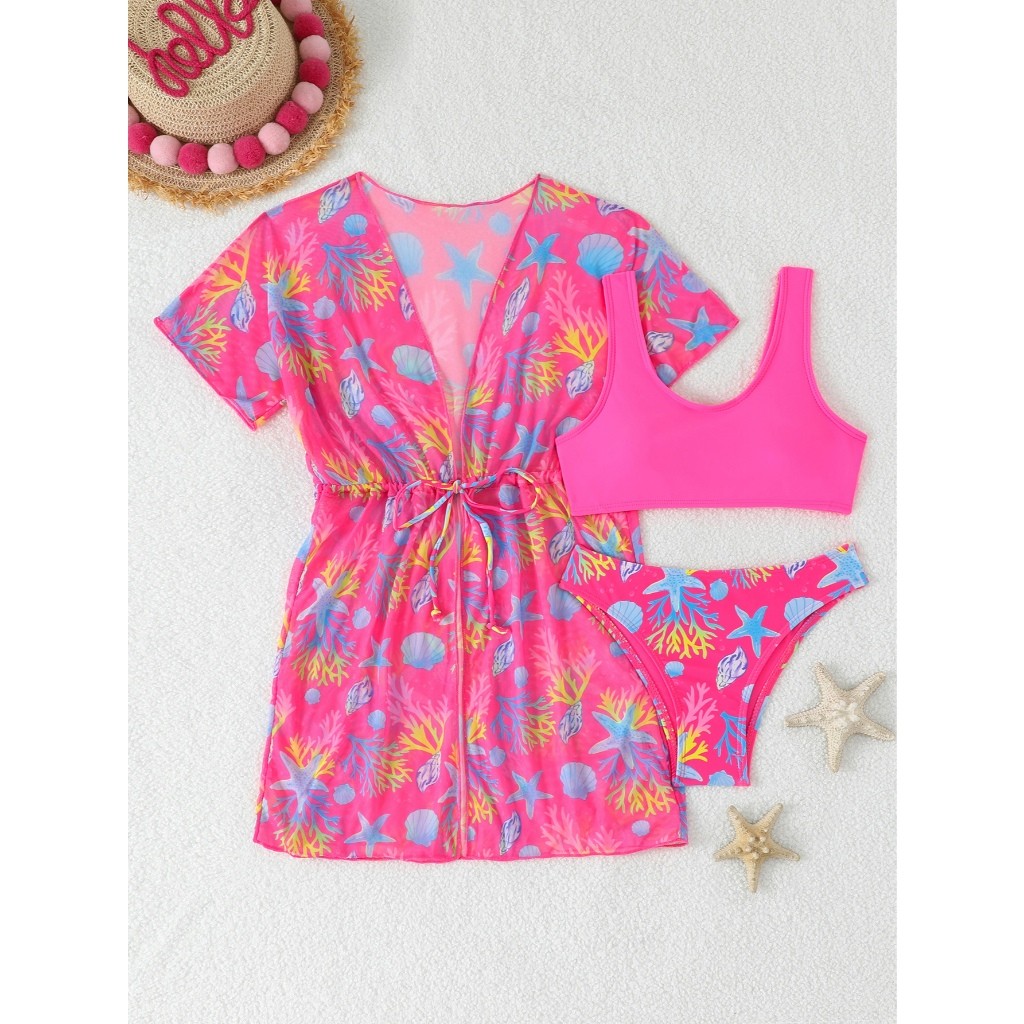RWX VEST Conjunto Jovem 3 Peças com Saída de Praia Estampada - Perfeito para o Verão! 2025 J3612