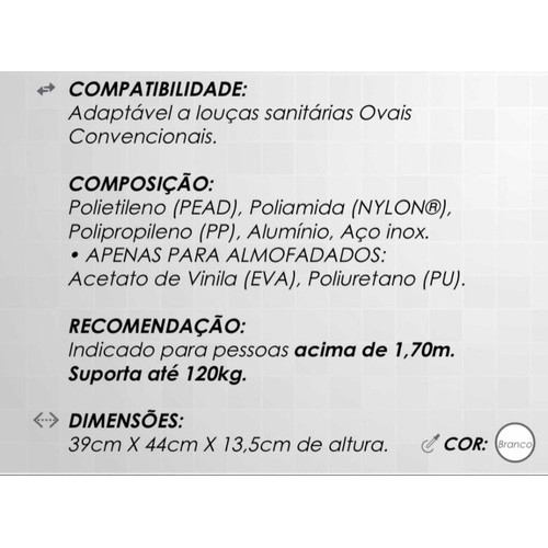 Assento De Vaso Elevado Almofadado 13,5 P/idosos Deficientes Branco 135ALMOFADADO