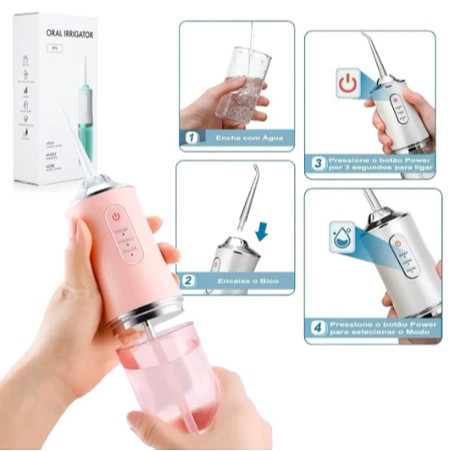 Irrigador Dental Oral Portátil Recarregável USB 220ml Promoção Limpeza Bocal Jato Forte