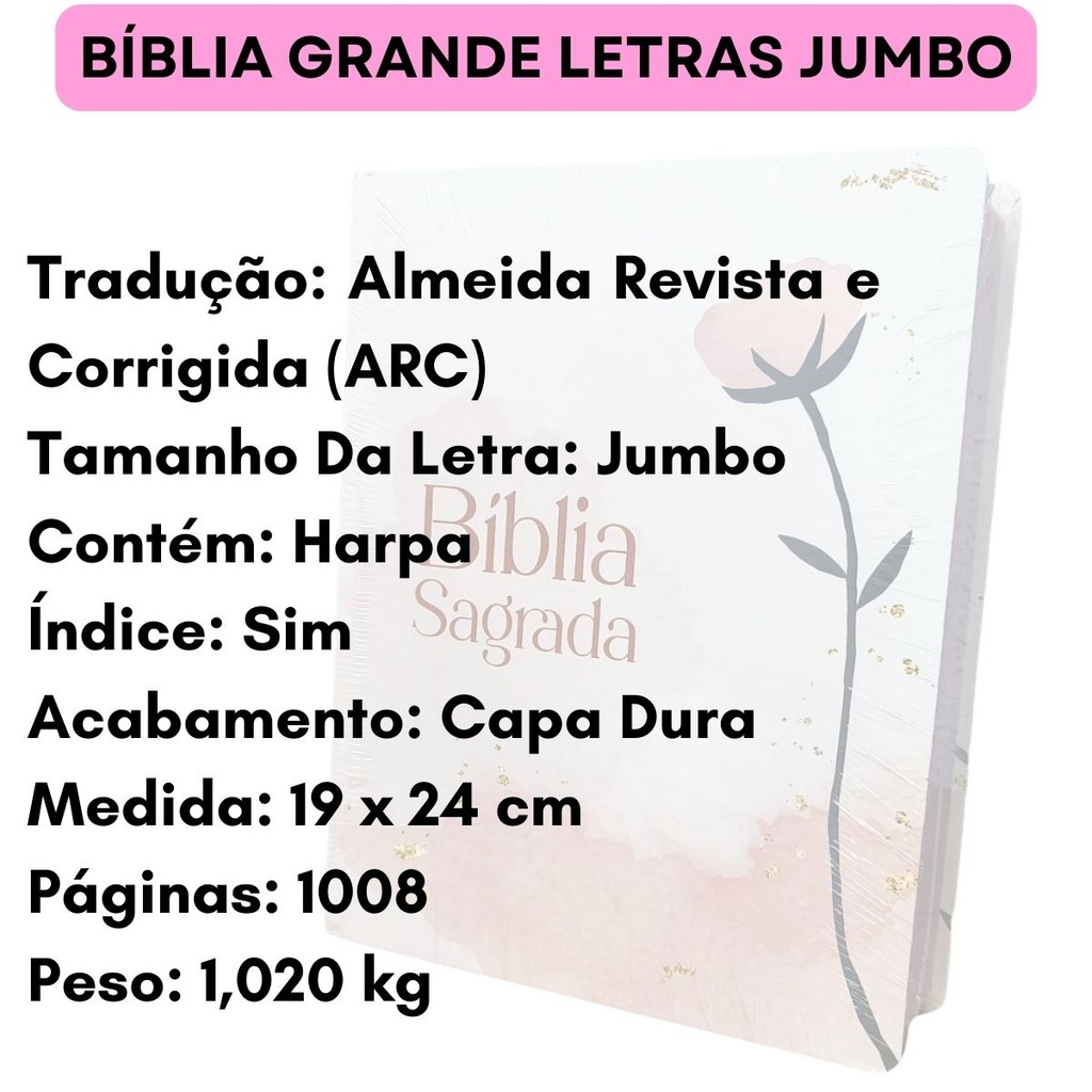 BIBLIA JUMBO PPM ARC CAPA DURA C/ HARPA - FLOR ROSA SCRIPTURAE