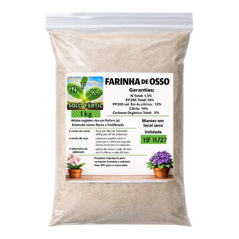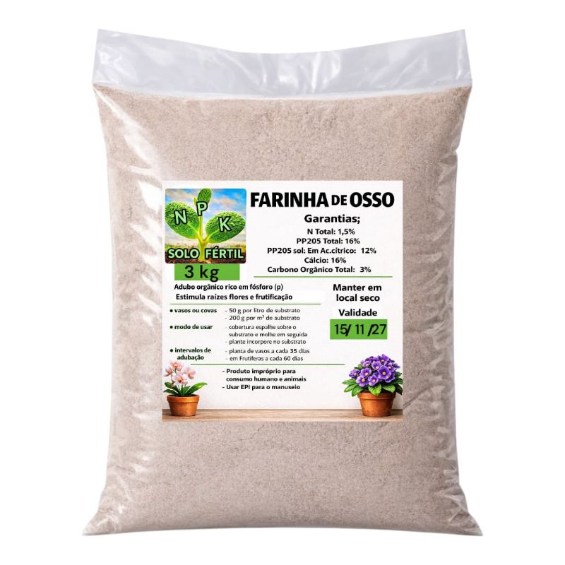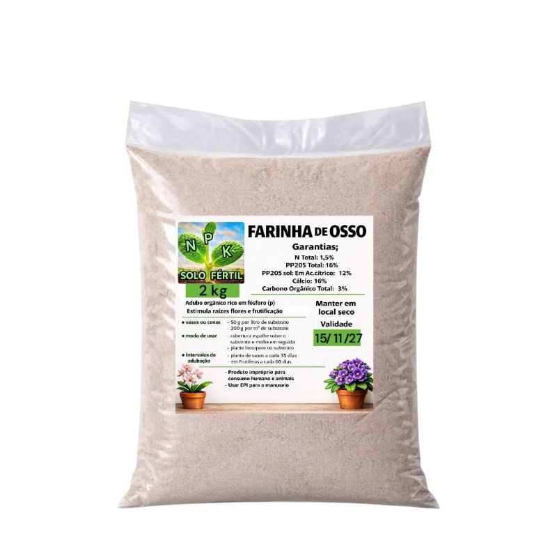 FARINHA DE OSSO CALCINADO ADUBO ORGÂNICO Rico em Fósforo para PLANTAS, Horta, Jardim e Flores