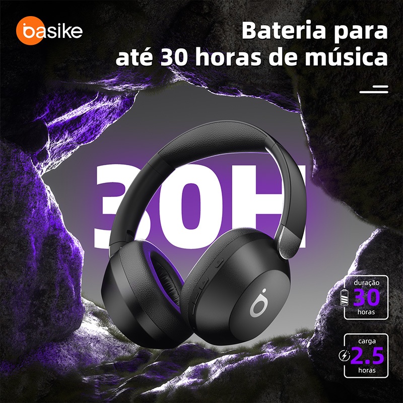 Basike Fone De Ouvido Bluetooth 5.4 Sem Fio Portátil,Fone 30h ANC&ENC Fone Ergonômico Com Microfone, fon042